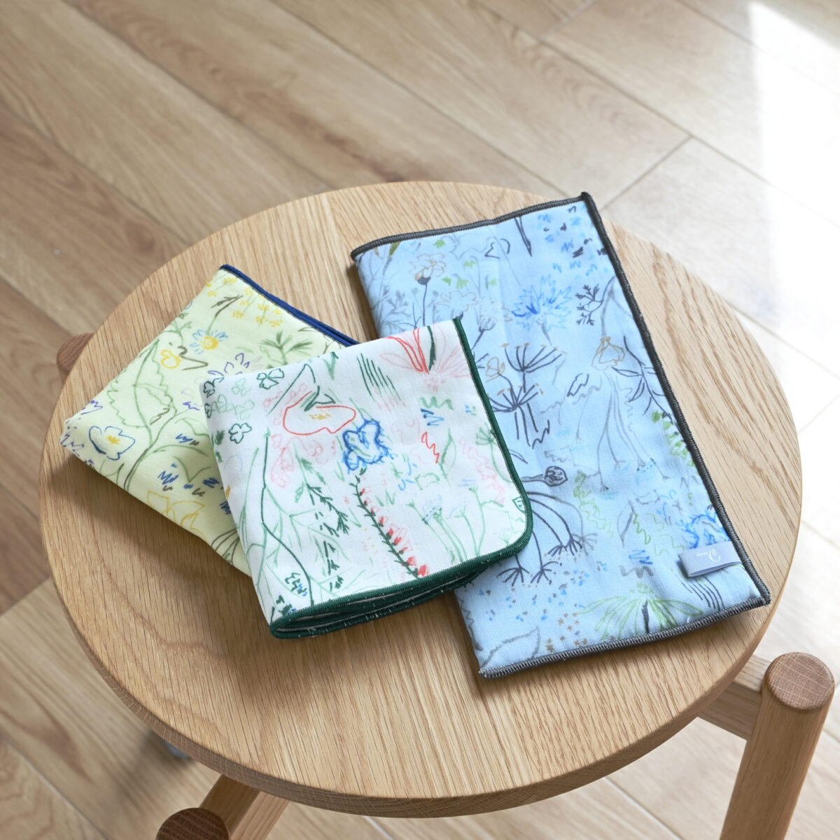その他にも、ボタニカルなデザインのバッグや、ハンカチなどもご用意しています。