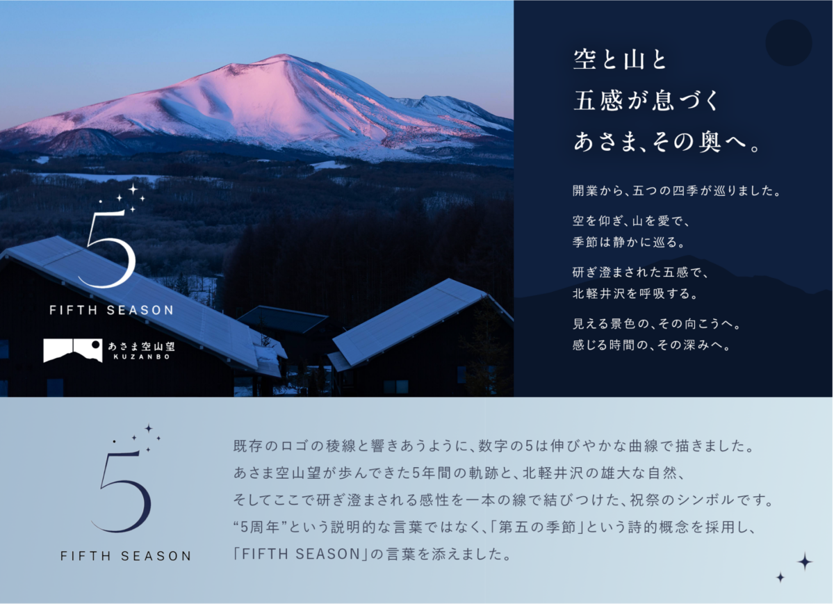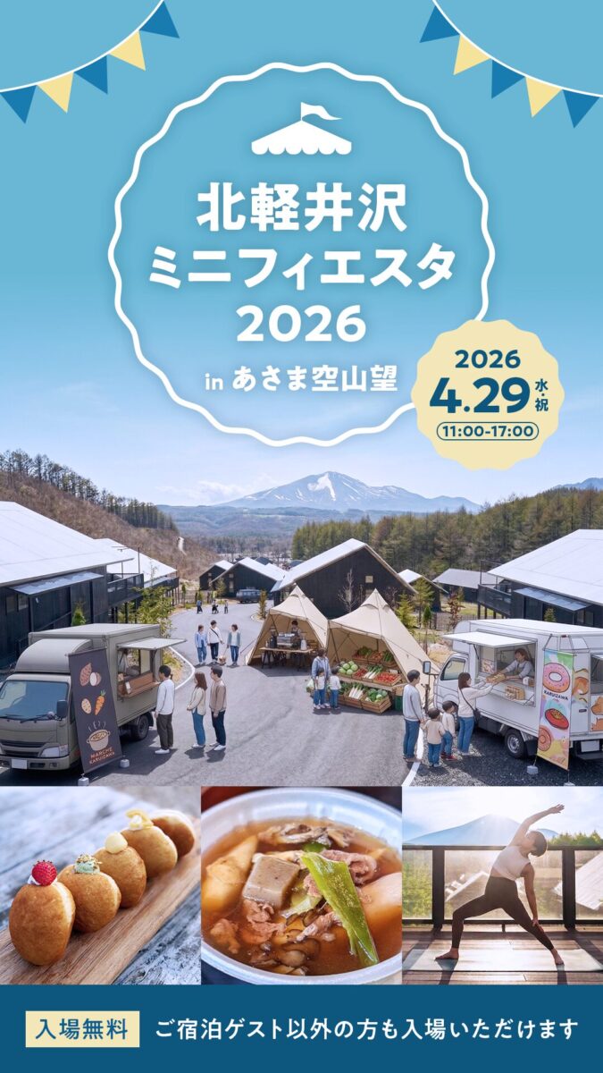 あさま空山望は2026年4月26日(日)に開業5周年を迎えます。 開業以来、私たちは北軽井沢の豊かな自然と温かい地域コミュニティに支えられてきました。今回のイベントでは、地元の食材、地元のクリエイター、そしてこの地の澄んだ空気そのものを主役に据えています。開業5周年のコンセプト「空と山と、五感が、息づくあさま、その奥へ。」のもとに、 単なるリゾート施設に留まらず、北軽井沢の魅力を世界へ発信する「ハブ」として、これからも地域共生を軸とした運営を続けてまいります。