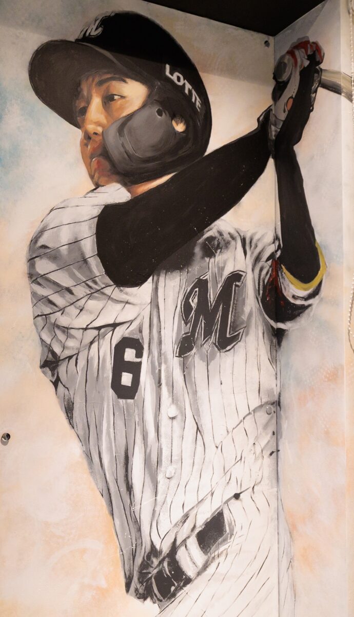 躍動感あふれる選手の姿が壁面に!世界にひとつだけのマリーンズルーム
