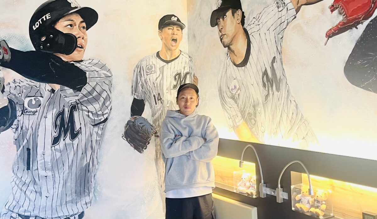 2026年のリニューアルでは、客室内の壁面を一新。ZOZOマリンスタジアムのプレイヤーズ・シートの壁面アートも手掛ける壁画アーティスト・Hori Hayato氏(HOLHY PAINT WORKS)が、5人の選手が躍動する姿を客室内に描きました。ダイナミックなフォーム、緊張感あふれる一瞬の表情——。まるで試合の熱気がそのまま空間に刻まれたかのような壁画アートが誕生しました。本壁画アートはマリーンズルームのために描かれたため、ロッテシティホテル錦糸町にご宿泊のお客さまだけがご覧いただけるのも魅力です。