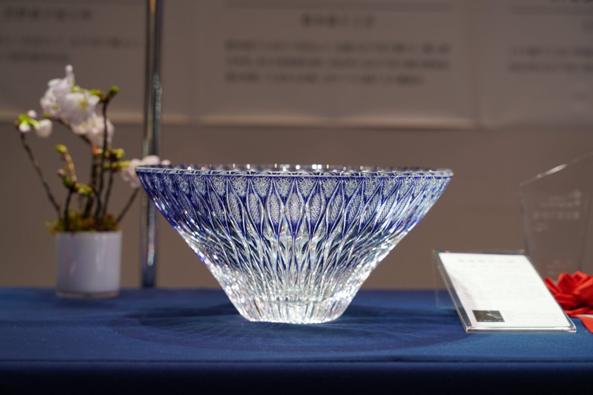 ・都知事賞の篠崎 翔太(江東区・篠崎硝子工芸所)作は、審査結果発表前に実施した出品職人たちによる互選投票にて1位となった作品。