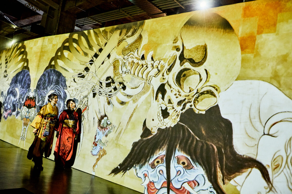 『動き出す妖怪展』は、江戸・明治時代などの絵師によって描かれた「百鬼夜行絵巻」「百物語」「鬼」「天狗」「河童」「付喪神」を中心に日本が誇る妖怪美術に最先端の映像技術と立体造形で没入できる世界初のイマーシブ体感型デジタルアートミュージアムです。