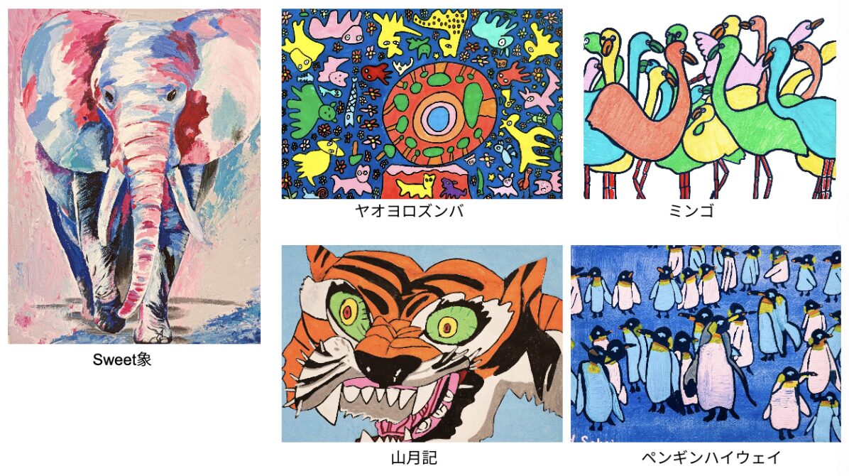 グッズデザインの原画を含む約15点の絵画作品を展示。