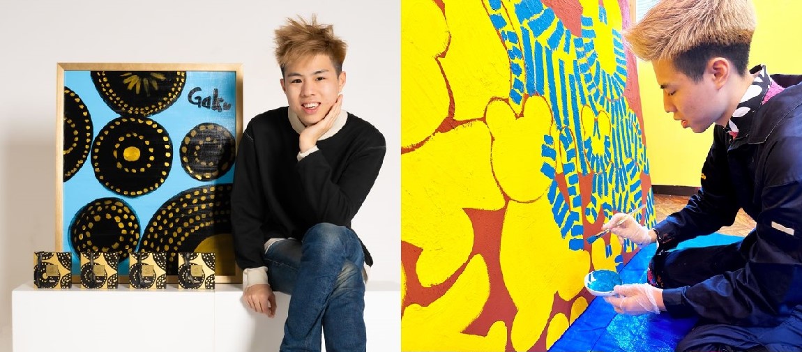 2001年神奈川県出身。3歳で重度の知的障害と言語障害を伴う自閉症と診断される。4歳から14歳まで米国ロサンゼルスで過ごし、帰国後、岡本太郎の絵画との出会いをきっかけに絵を描き始める。2020年ニューヨークで個展。以来、国内外で個展の開催を続けている。GAKUのカラフルでポップな作風は注目を集め、「GODIVA」「THE BODY SHOP」などグローバルブランドとのコラボレーションも多数。日本初の大型原画展となる本展は、会期中に25歳を迎えるGAKUの新たな一歩。