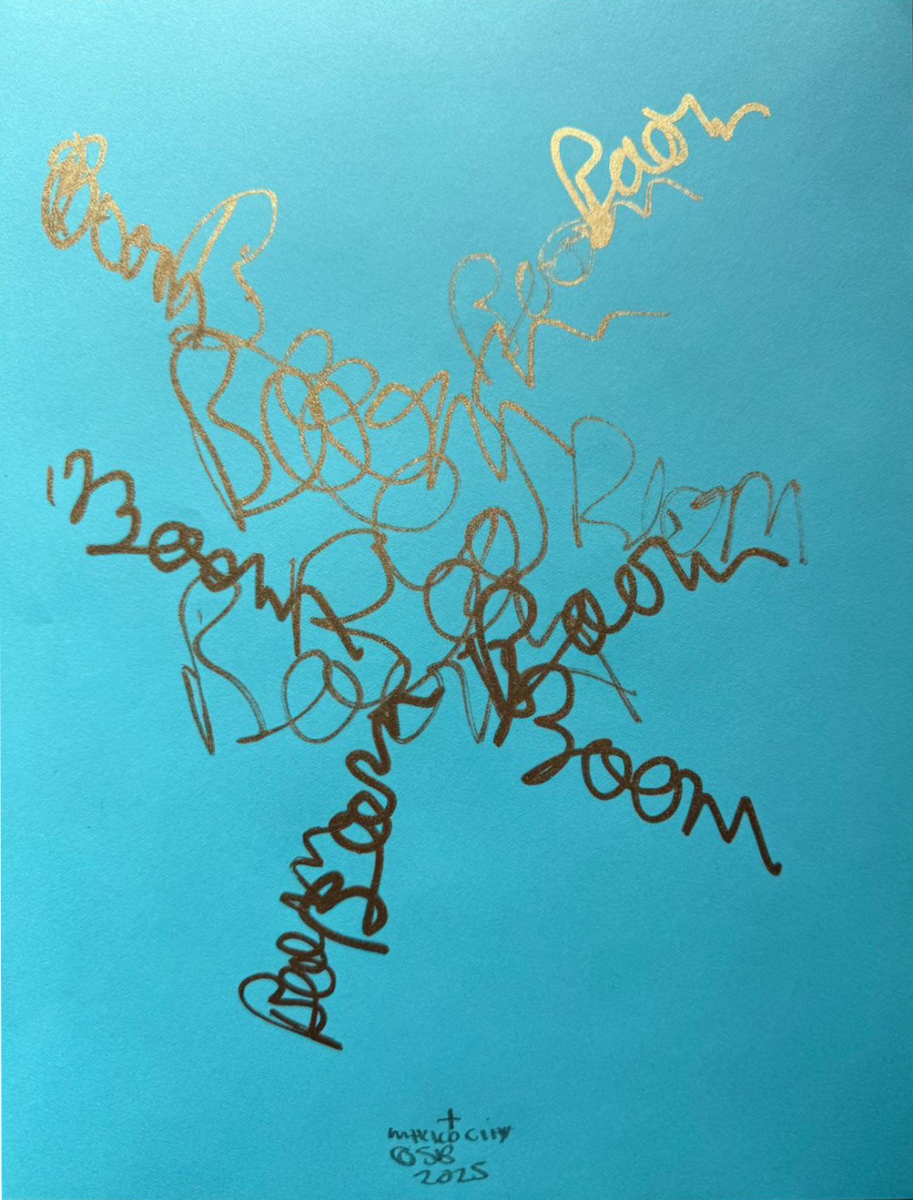 白やさまざまな色のA4用紙に、グラファイト、オイルスティック、油性マーカー、メタリックマーカーで描かれた作品群は、単なる絵画の下絵ではありません。思考や衝動の痕跡を、紙の上に直接刻み込んだシリーズとして立ち上がります。