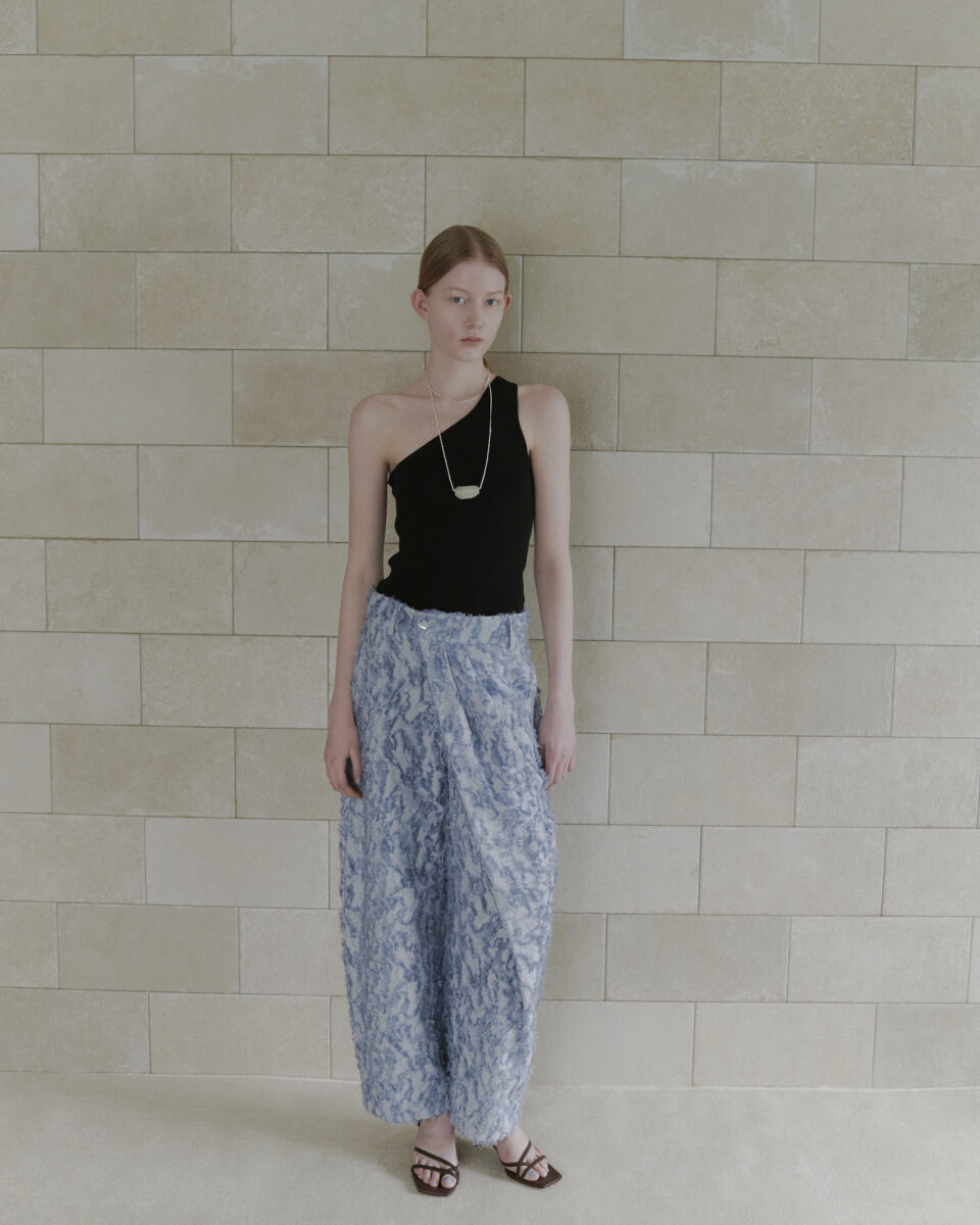 作品から着想を得たカーブシルエットが特徴的な構築感のあるパンツ。