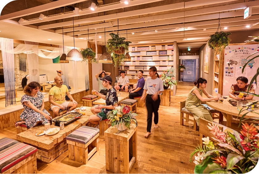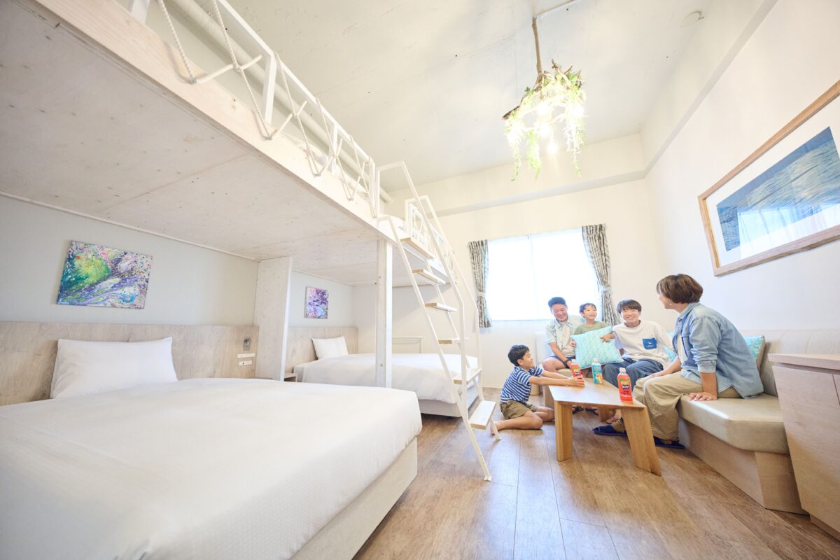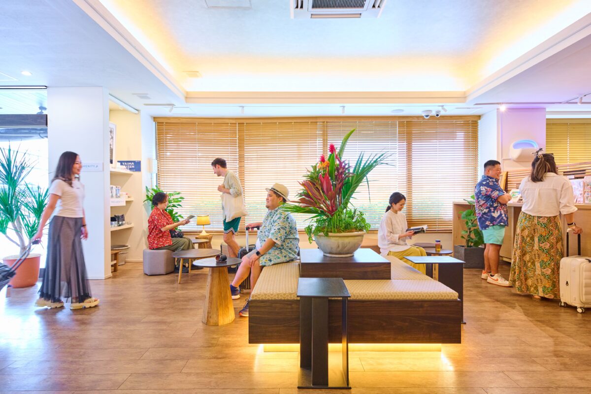 昨年には客室やロビーなど内装リニューアルを実施しました。二段ベッドを備えたバンクルームには、島の自然を感じて頂けるようなアートやインテリアを配置。八重山・石垣にゆかりのあるアートや書籍を揃えた「島の気配に溶け込むロビー」も新たに誕生し、心地よい滞在空間を演出しています。