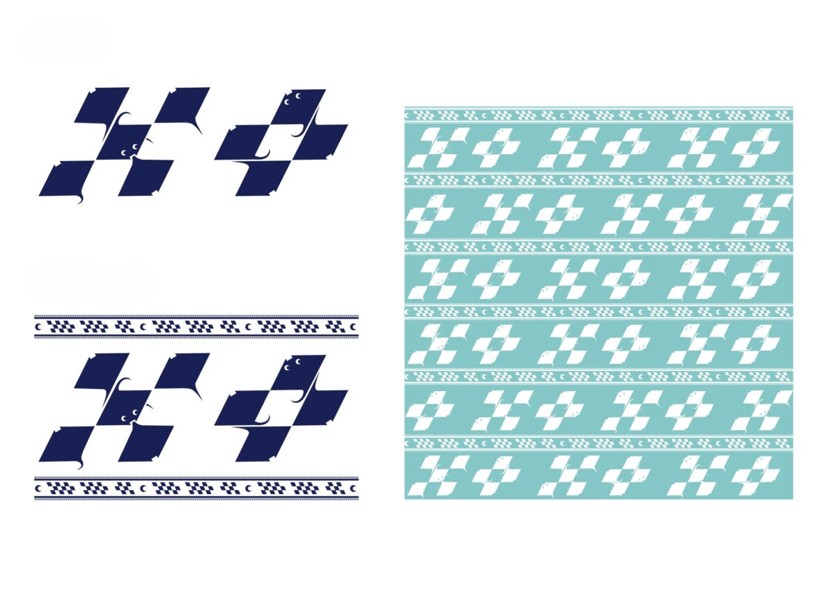 今回のククルオリジナルデザインでは、この伝統文様を 九つ・九つ・六つのマス目(996=ククル) に再構成し、石垣島を象徴するマンタのモチーフを組み合わせました。デザインを担当したのは、沖縄・石垣島をテーマにしたアート&デザインブランド「イチグスクモード」の池城安武氏。