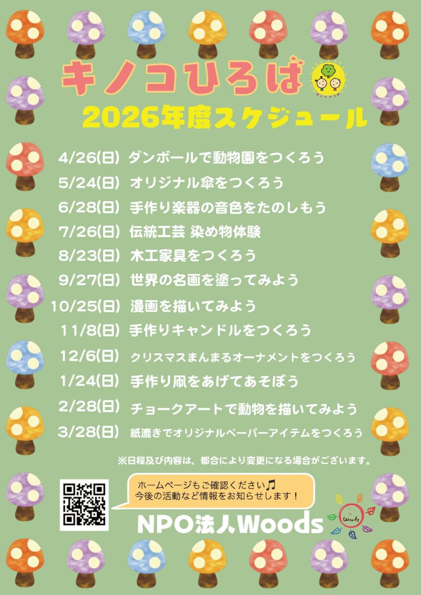[キノコひろば] – NPO法人Woods主催、2026年度開催スケジュール公開
