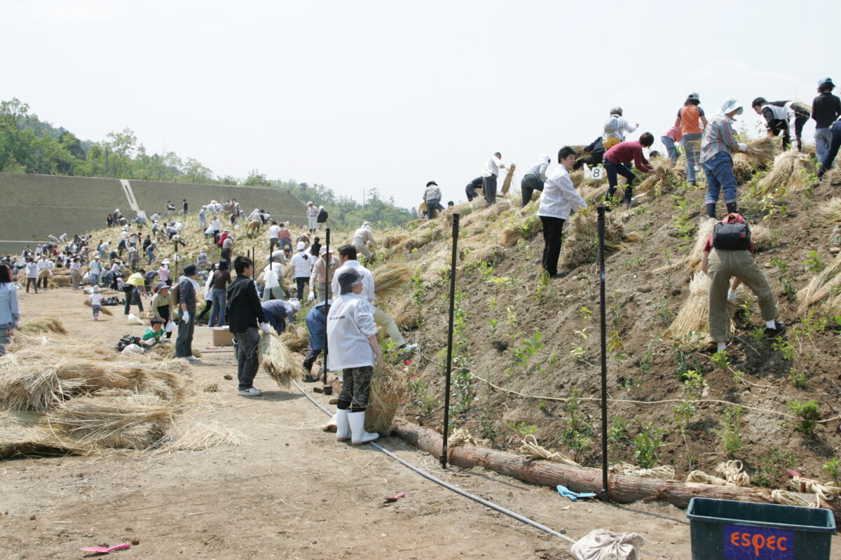 2007年、植物生態学者・宮脇昭氏との出会いをきっかけに、「何百年も続く森を育てたい」という想いのもと、和久傳ノ森の植樹が始まりました。地域の方々や全国から集まった方々とともに苗木を植え、56種3万本の木々が育てられてきました。