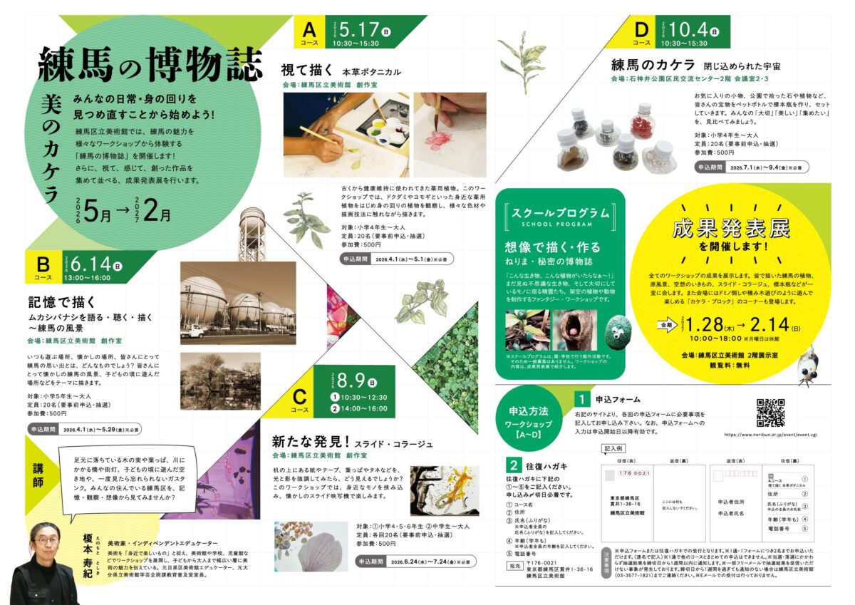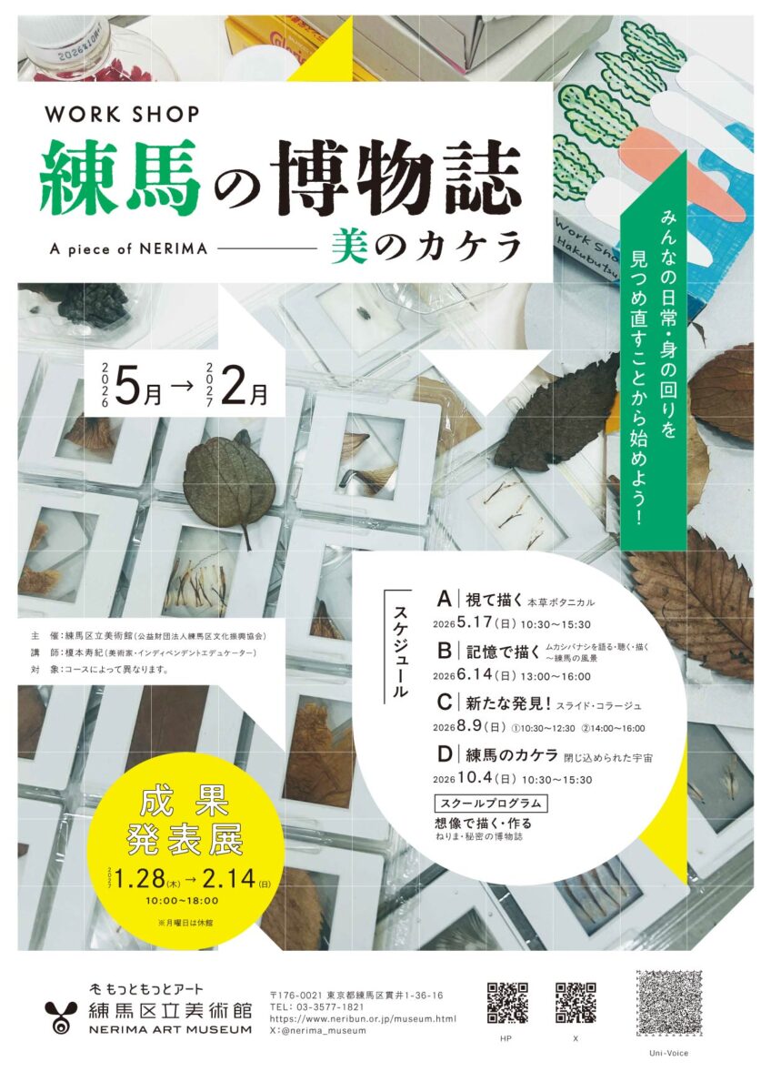 練馬区立美術館(東京都練馬区貫井)では、2026年5月から10月にかけて、「練馬の博物誌 美のカケラ」と題し、ワークショップを開催します。