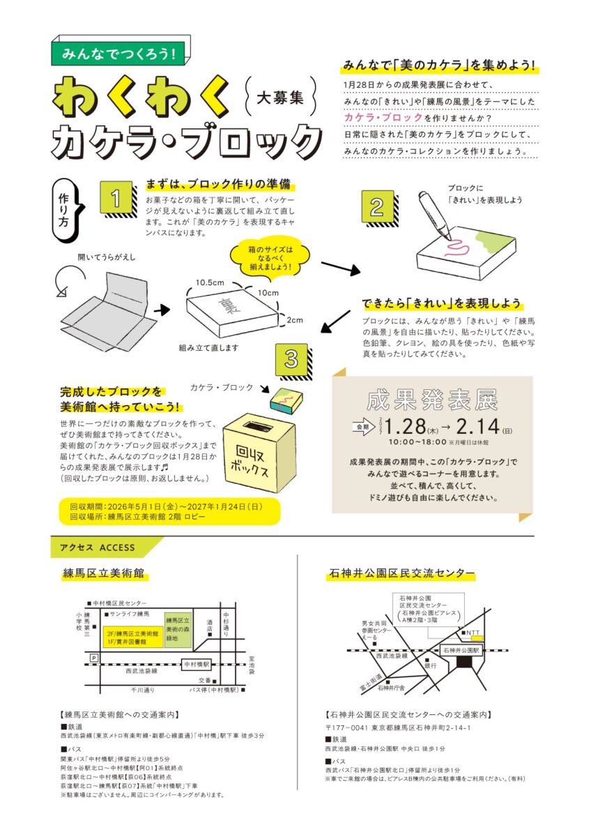 〇成果発表展で展示する「カケラ・ブロック」を募集します。詳細はこちら