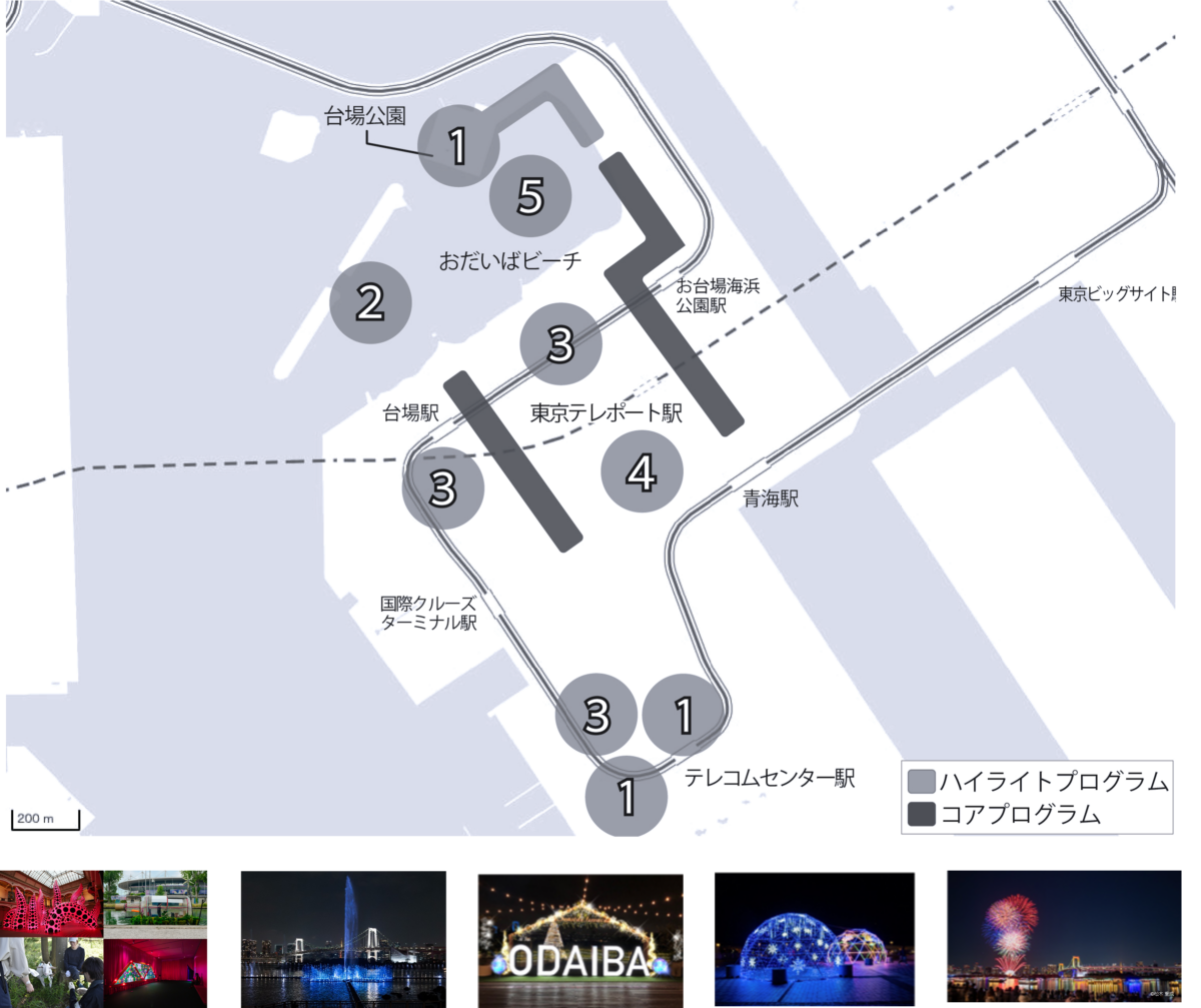ARTE TOKYOでは、象徴的なイベントやベニューが集積する3つのコアエリアを中心に、パートナープログラム等との連携を通じて、多摩・島しょ地域を含む都内各地へと展開していきます。