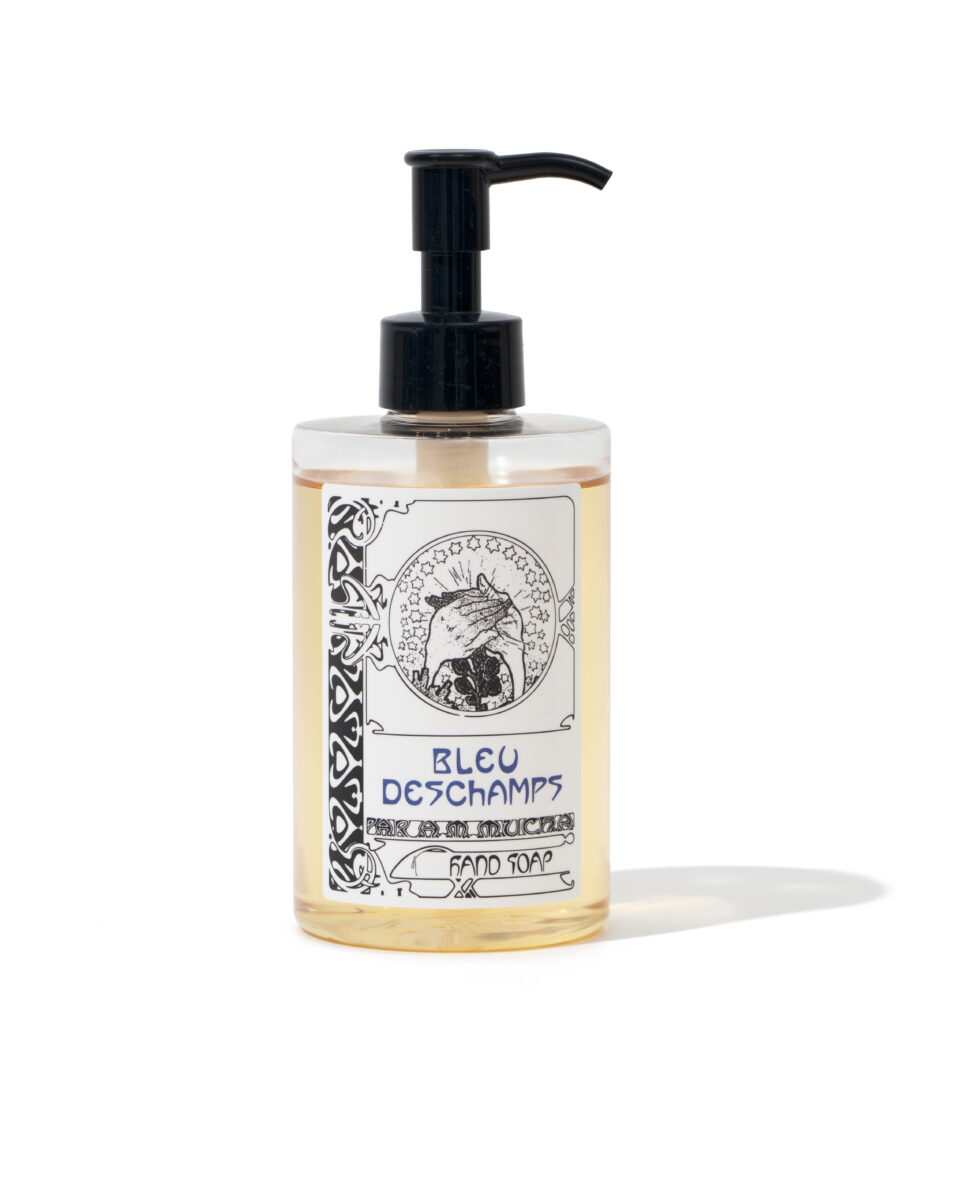 洗うたびに気分もリフレッシュできるハンドソープは、高級感を意識したとろみのあるテクスチャーで天然色素で着色。アミノ酸系洗浄成分のマイルドな使用感で泡立ちも穏やか。泡立てるとすぐに、オードトワレと同じ香りが広がります。泡切れも良く、素早く洗い流せるのに洗い上がりはしっとりで、心地よい香りが手肌に程よく漂います。ラベルには、ルーム&ファブリックミスト同様、「装飾資料集」の表紙に登場する「トリポリの姫君イルゼ」の手のアートをコラージュしています。“優れた芸術は日常の中にあってほしい”というミュシャのフィロソフィーを体現したデザインです。
