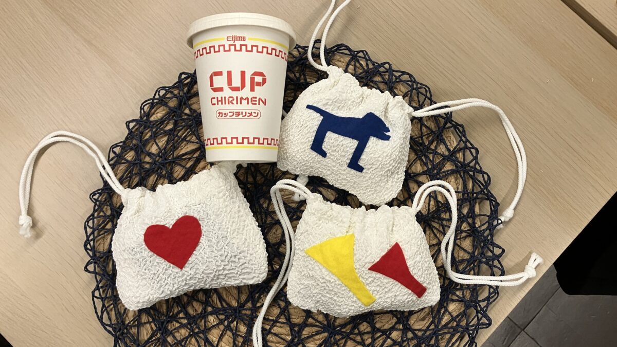 お湯を注いで3分でオリジナルのちりめん巾着が作れる「カップチリメン」