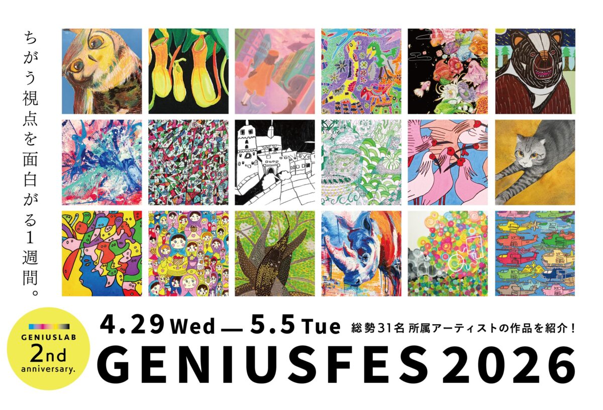 すみなす(本社:佐賀県佐賀市)は、運営するアート拠点「GENIUSLAB」の開設2周年を記念し、2026年4月29日(水祝)〜5月5日(火祝)の期間、所属アーティスト31名による350点以上に及ぶ作品展示を中心としたイベント「GENIUS FES2026」を開催いたします。