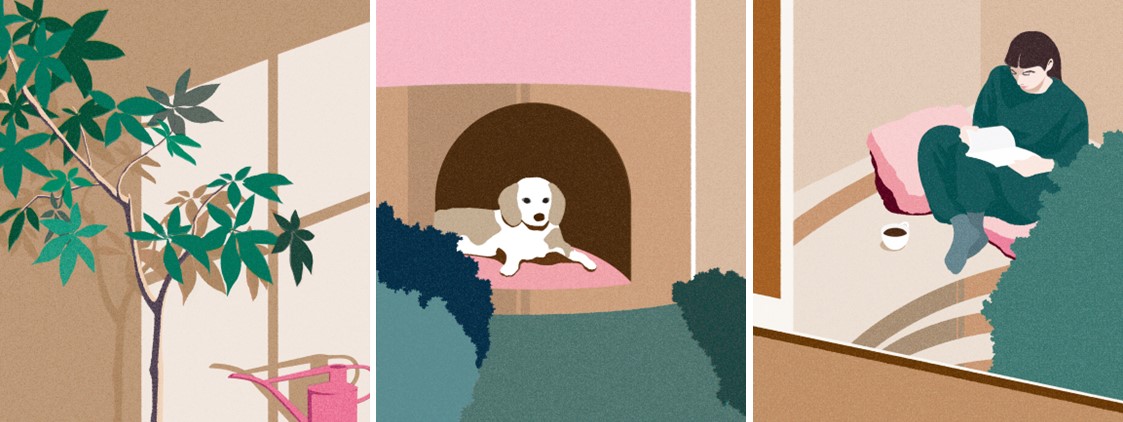 「庭のある生活」「ペット」「ヌック」のイメージイラスト