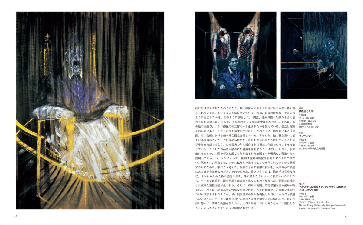 主に独学で美術を学んだフランシス・ベーコン(1909‒1992)は第二次世界大戦後、悪評と共に頭角を現しました。描かれた不気味な形象は、グロテスクでありながらも、人間として生きることの試練とトラウマの反映であり、同時に人間の特性を深く掘り下げたもの、そして、美術史上初めて公然と「同性愛」というテーマを表現したものでもありました。本書では、《ベラスケスの教皇インノケンティウス10世の肖像に基づく習作》《トリプティック1974年3月》《横たわる女》など、名作・衝撃作78点を収録。現在日本語の画集が手に入らない、唯一無二の作家の作品世界に触れられる貴重な一冊です。