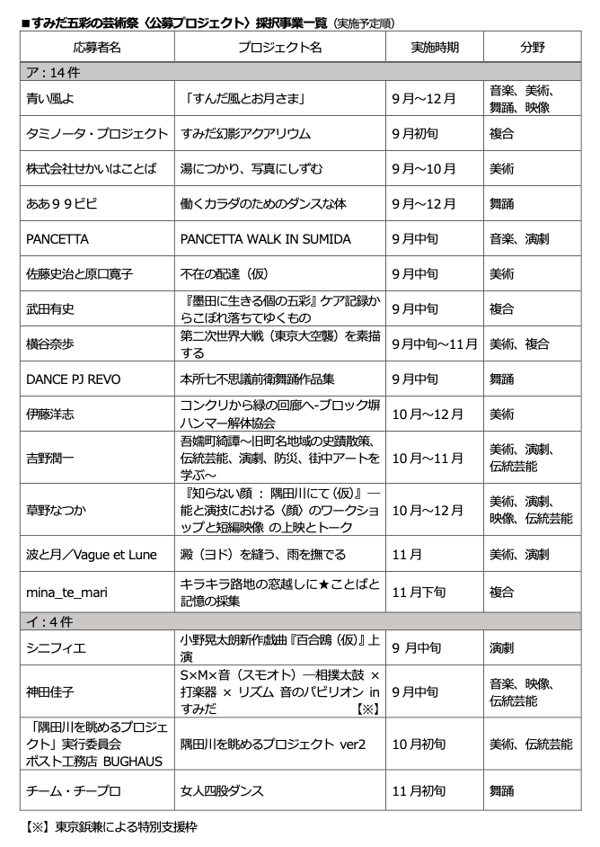 ■すみだ五彩の芸術祭〈公募プロジェクト〉採択事業一覧(実施予定順)