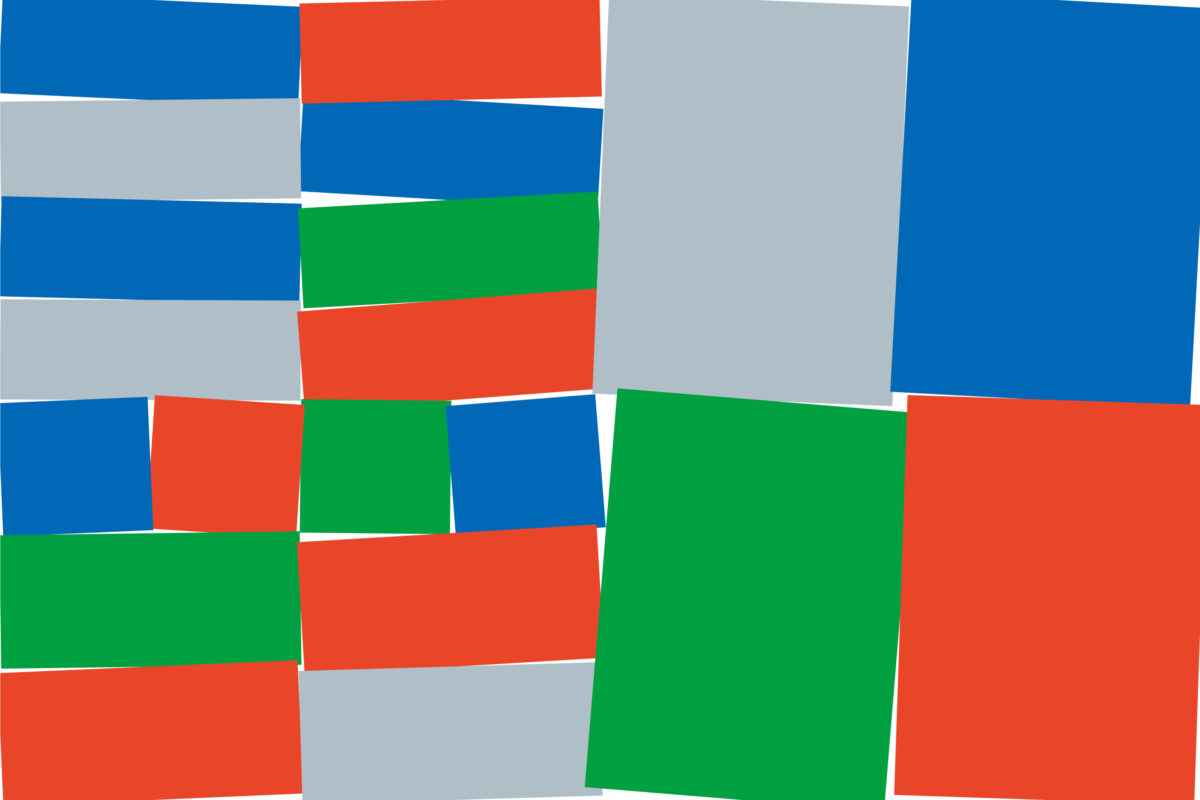 「墨田」の文字を色面で解体・再構築し、グラフィック化しました。鮮やかな色を基調にしながら、無彩色も盛り込んで「五彩」を多角的に表現しています。また、それぞれの色面がランダムに傾くことで、墨田の「場」が作品によって躍動し、交歓が生まれることをイメージしています。各種媒体に合わせて比率を変化させても成り立つレスポンシブなデザインを志向しました。