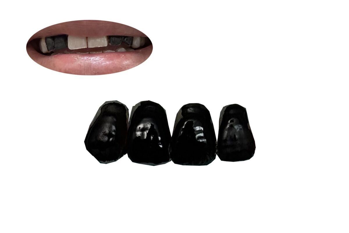 歯の表面に塗布することで、歯の色を黒く見せる歯の化粧品です。