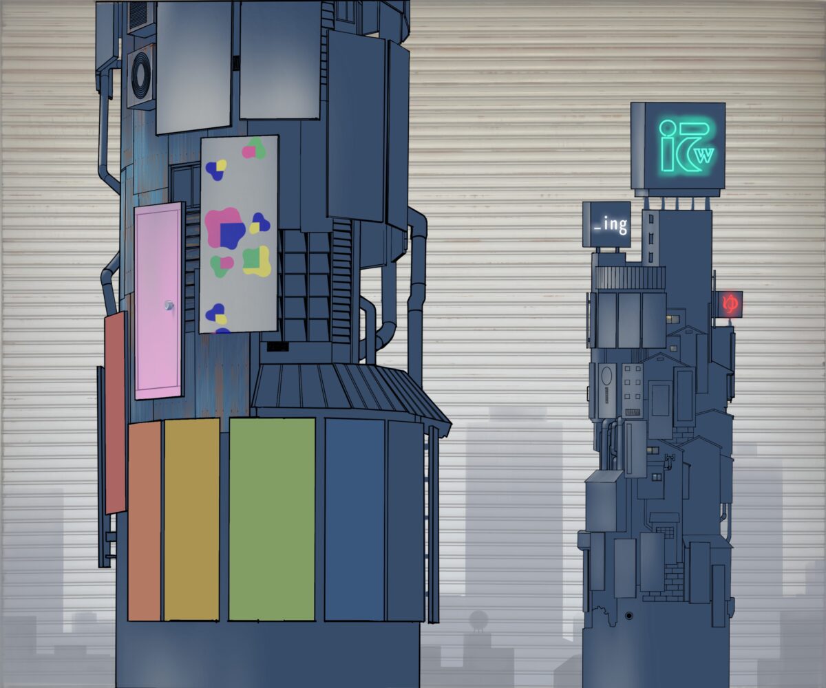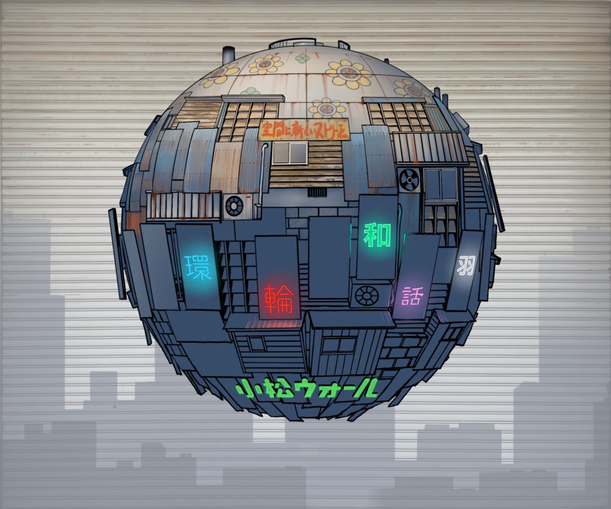 また、小松ウォールアイティが手がけるパーティションは、単に空間を区切るためのものではなく、空間を演出し、人と人、人と社会をつなぐ存在でもあります。本作では、そのパーティションを作品内に描き込むことで、パーティションの役割を「遮るもの」ではなく「連結するもの」として再定義しています。