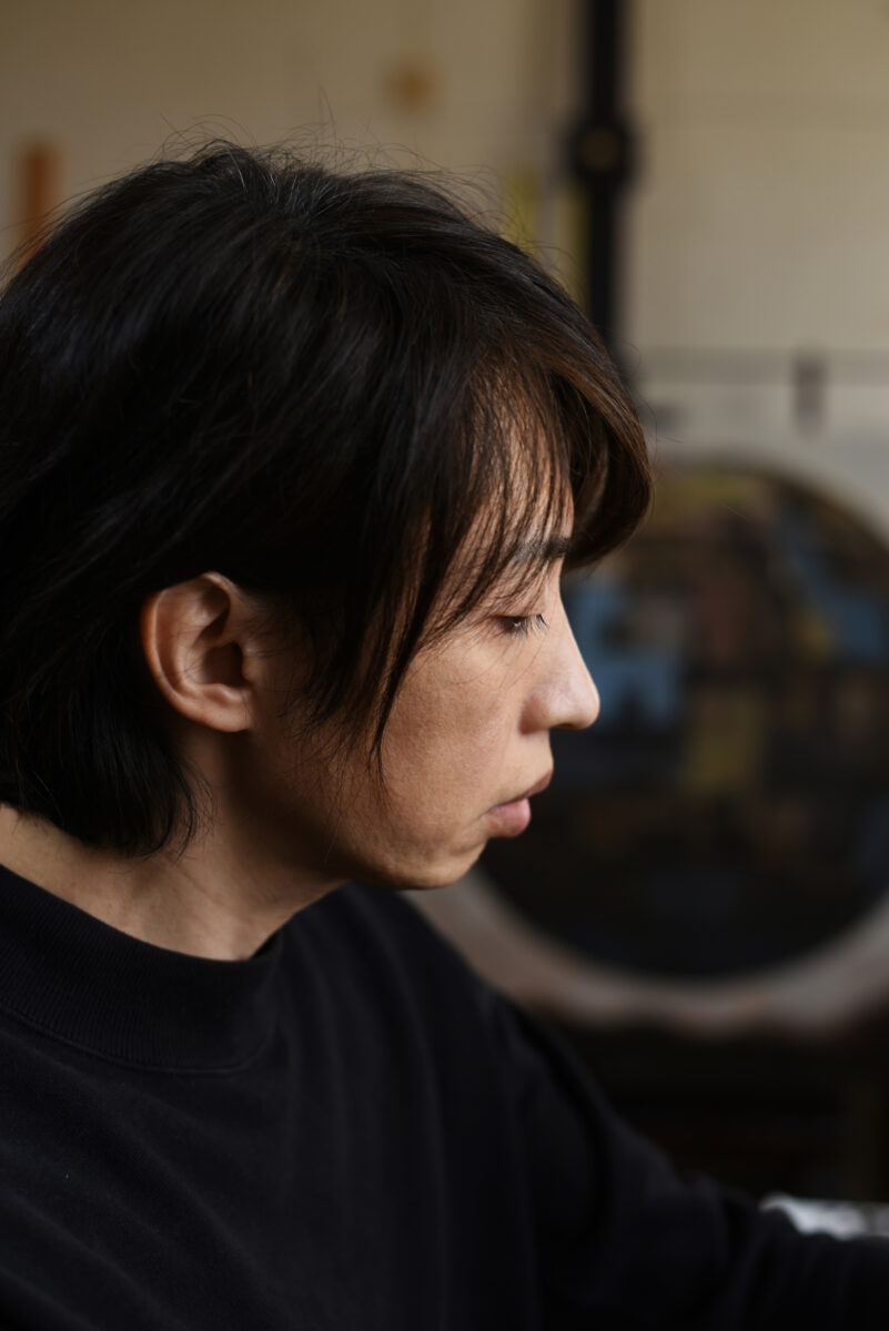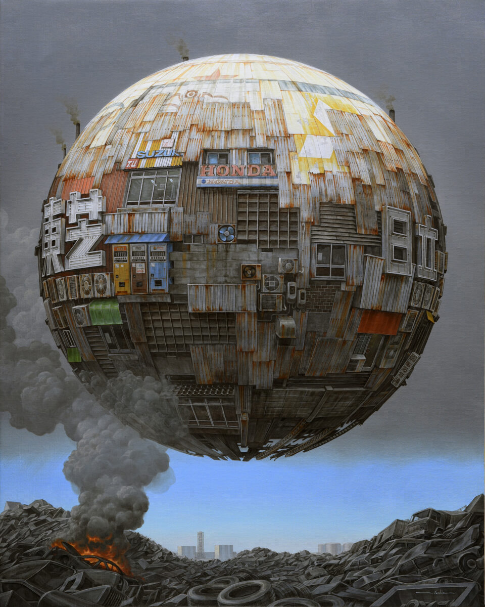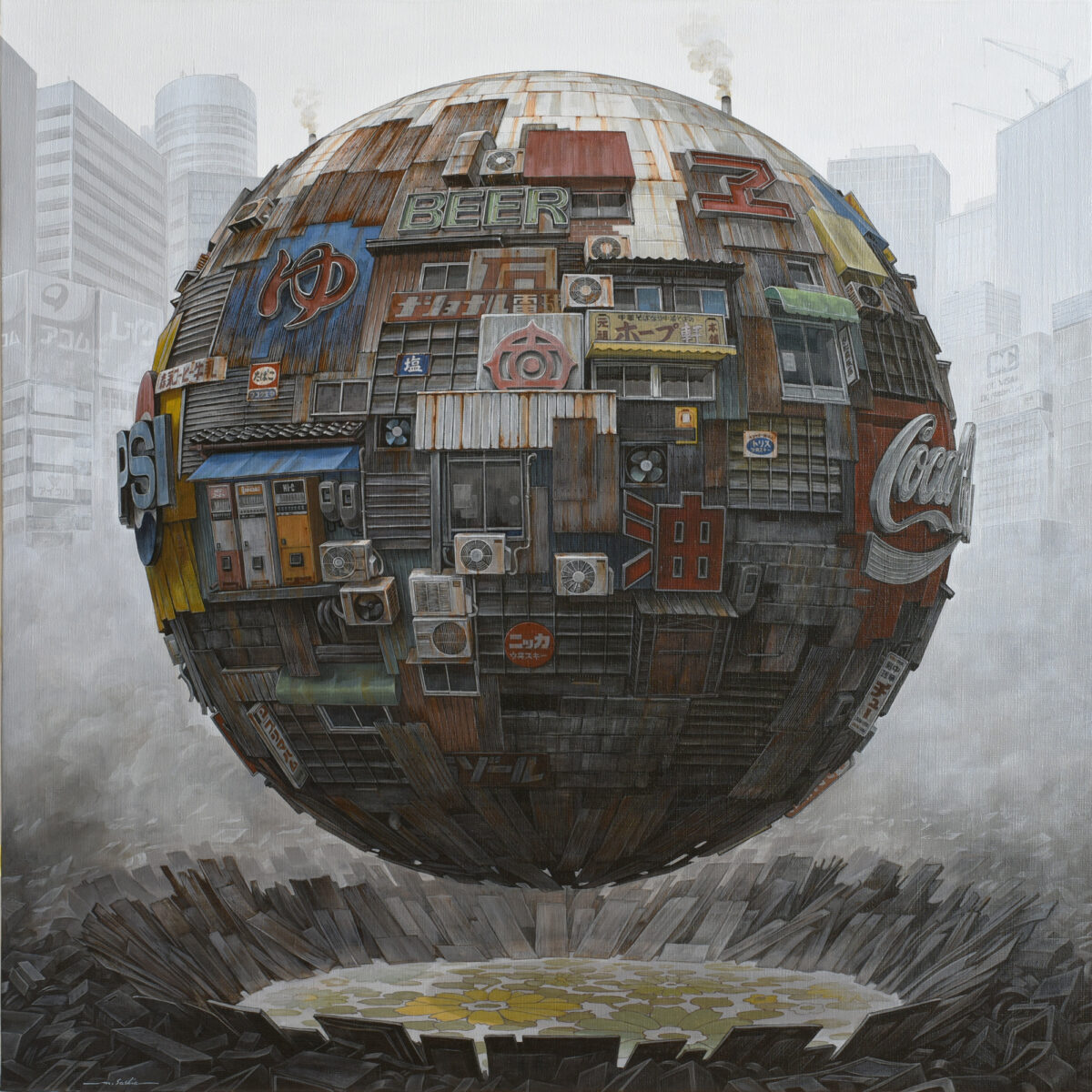 同氏の代表的な球体モチーフの表現は金沢美術工芸大学大学院在学中に考案されたもので、2000年に大学院修了した後、球状の建造物が都市に浮かぶ風景を描いた作品を軸に本格的な作家活動を開始しました。