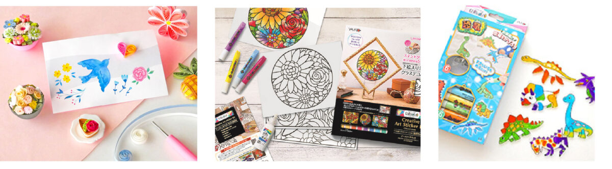 ヤマト㈱は、ホビー・クラフト分野への更なる展開を目指し、ホビー・クラフト商品“アートシリーズ”を出品します。定番のクリアカラー絵の具「グラスデコ」をはじめ、「グラスデコ」の人気シリーズ「グラスデコ オーナメントセット」、昨年発売したコラボ商品「グラスデコアートシールセット 海野ちなみ」、水性クレヨン「カラリックスシルキーツイスター」等、多数の商品を取り揃えます。ブース内では、例年通り細長い紙を巻いて作る「ペーパークイリング」パーツ作り体験を行う他、9日・10日は主にご家族連れを想定した「グラスデコ オーナメント」体験(1,200円以上の購入者限定)を実施し、連日ハンドメイド体験をお楽しみいただけます。さらに、会場内の総合ワークショップエリアでは、グラスデコアーティストの海野ちなみさんを講師に迎えた特別ワークショップ『海野ちなみと作るステンドグラス風アートシール体験』を開催。コラボ商品を使用し、プロの技を教わりながら自分だけのステンドグラス風シールを作れる貴重な機会です。ヤマトは、作る楽しさや手軽さを伝えるとともに、ホビー・クラフト商品の更なる普及を目指します。詳細は以下の通り。