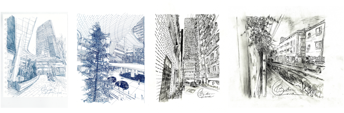 便利になっていく世の中や、移り変わっていく街の中で、100年先でも「確かに良かった」と思える2026年現在の高輪の 街の個性をニュウマン高輪は画狂人 井上文太と共に高輪の街の歴史的資料としてスケッチに描き100年先まで遺し伝えていきます。