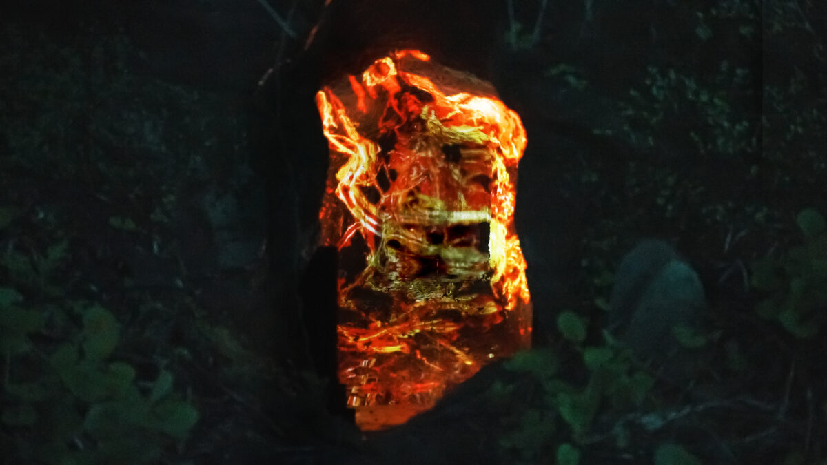 森を捉えた写真は、レンズによって森を平面化し切り取っている。本作は、光によって森をそのまま切り取っている。