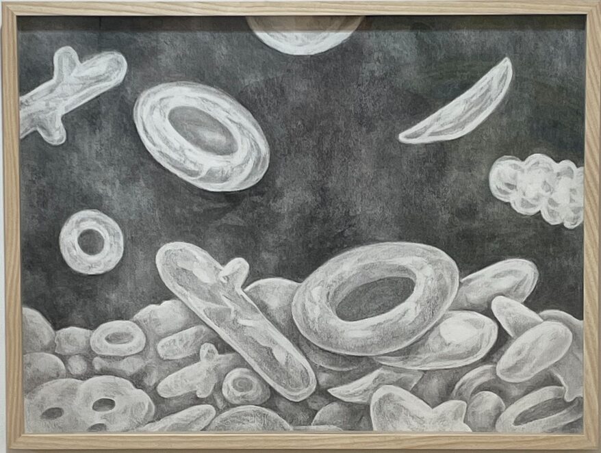 日常の中に溶け込んでいる無意識の感覚や、言葉になる前の感情。天野はそれらを神秘的な有機的フォルムと淡い色彩によって視覚化します。曖昧な記憶や輪郭の定まらない感覚を、具体的な「形(作品)」として捉え直しています。