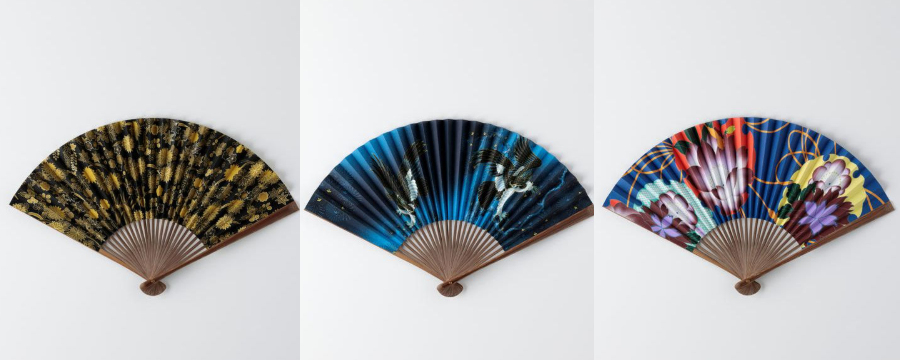 KYOTO KENRAN扇子(菊に露芝紋、松に二居鷹紋、花尽くし水引紋)
