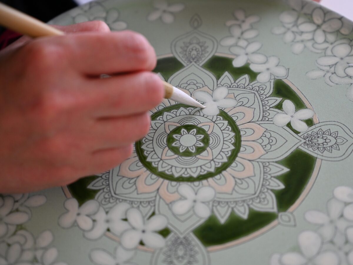 「曼荼羅塗り絵皿アーティスト養成講座」では、こうした曼荼羅アートの特徴を活かし、皿の上に描く独自の表現方法を学ぶことができます。