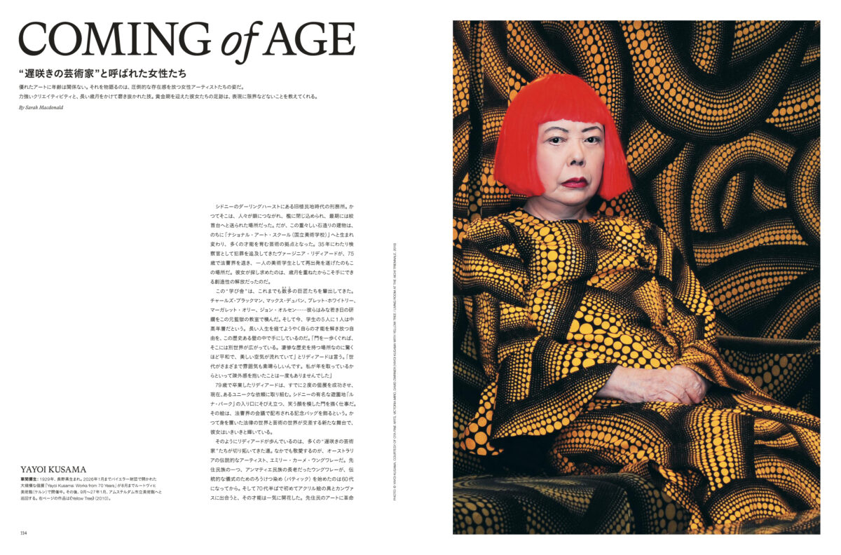 カバーの作品を手がけたのはフランス出身のアーティスト、マティルド・ドゥニーズ。絵画を起点にカンヴァスを切り刻み、着られる彫刻へと展開するその作品が呼び覚ますのは、身体感覚そのもの。聞き手にアンジェラ・レイノルズを迎えたインタビューでは、「絵画と交わしている大事な約束は、 考えないこと、自身を驚かせるような 手法を取り入れること。 そこにはルールも伝統的な技法も、 絵画の歴史も介在しない」とドゥニーズは話します。ほかにも、2026年注目の展覧会、女性アーティスト(やなぎみわ ほか)のインタビュー、日本人作家6名による絵画特集、サーペンタイン・ギャラリーCEOベッティーナ・コレクらアートシーンを牽引する女性のインタビュー、「第61回ヴェネチア・ビエンナーレ国際美術展」など最新の話題の特集、そしてアートにまつわるさまざまな読み物を織り込みました。