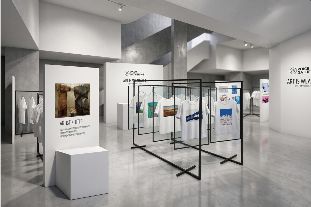 VOICE GATHERINGは、誰もが日常的に着用するTシャツを“キャンバス”と捉え、アートと人をつなぐ新しいプラットフォームを目指します。音楽を聴くように、アートを纏う。