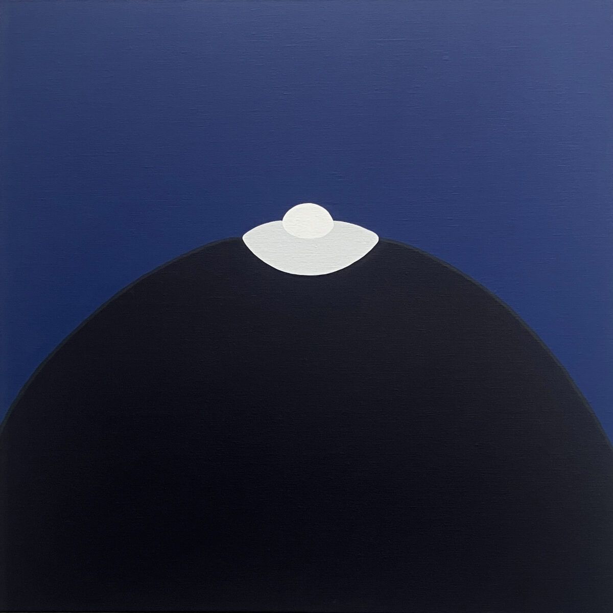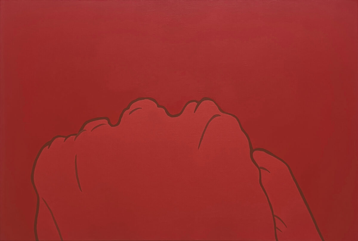 キャンバス上に引かれた線や重なり合う色彩は、身体の柔らかなカーブや起伏と呼応し、連なる峰や稜線のような風景を描き出しています。