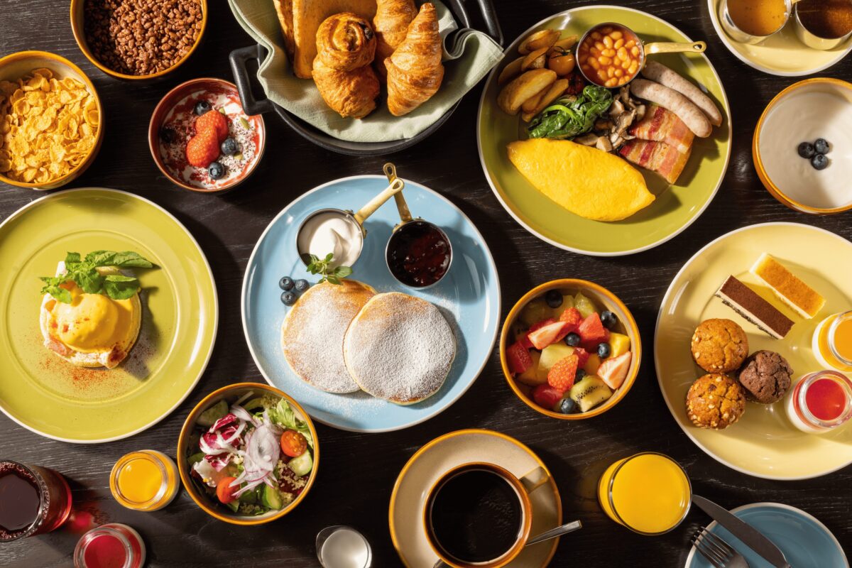 東京観光を楽しんだあとは、落ち着いた色調を基調に、和モダンな格子柄の壁紙や、「水の街・田町」のデザインを取り入れた客室で心ゆくまでおくつろぎいただけます。 開放感のある大きな窓から差し込む自然光と、プルマンレシピの心地よさを追求したベッドが、日常の疲れをやさしく癒し、都心にいながらも落ち着いたひとときを演出します。 翌朝は、レストラン「KASA」にて、バラエティ豊かな朝食ビュッフェをお楽しみいただけます。 ケージフリー卵を使用した出来立てのオーガニックオムレツやエッグベネディクト、新鮮なフルーツや彩り豊かなサラダ、パンケーキ、和朝食をご用意。デザイン性と開放感あふれる空間で、ゆったりとご朝食をお楽しみください。