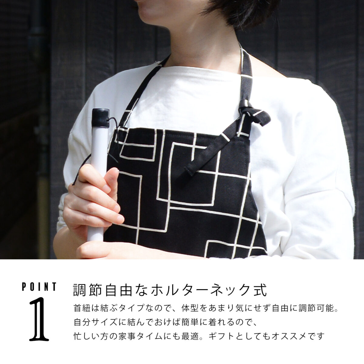 首紐は結ぶタイプなので、体型をあまり気にせず自分サイズに自由に調節可能。簡単に着脱できるので忙しい方の家事タイムに最適です。