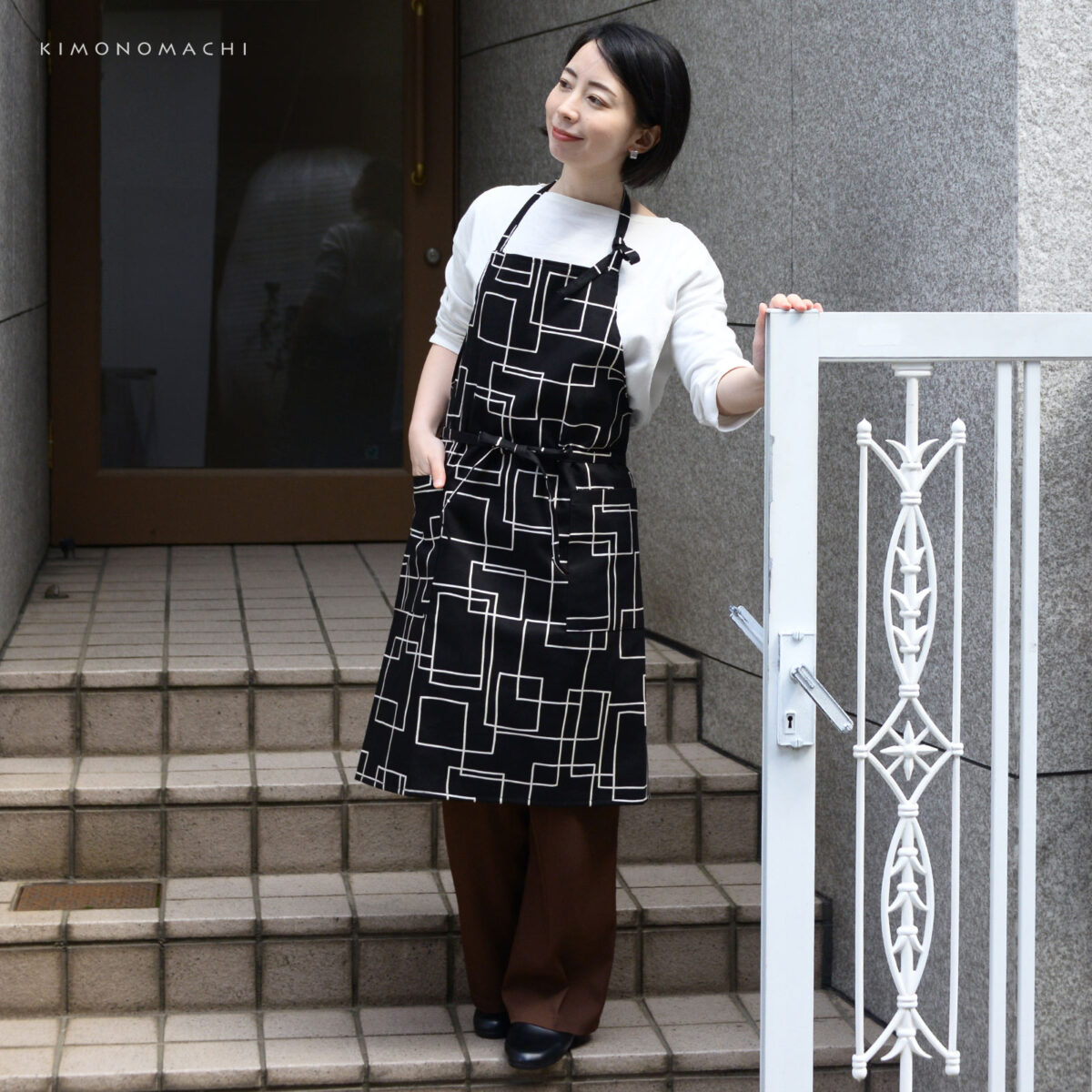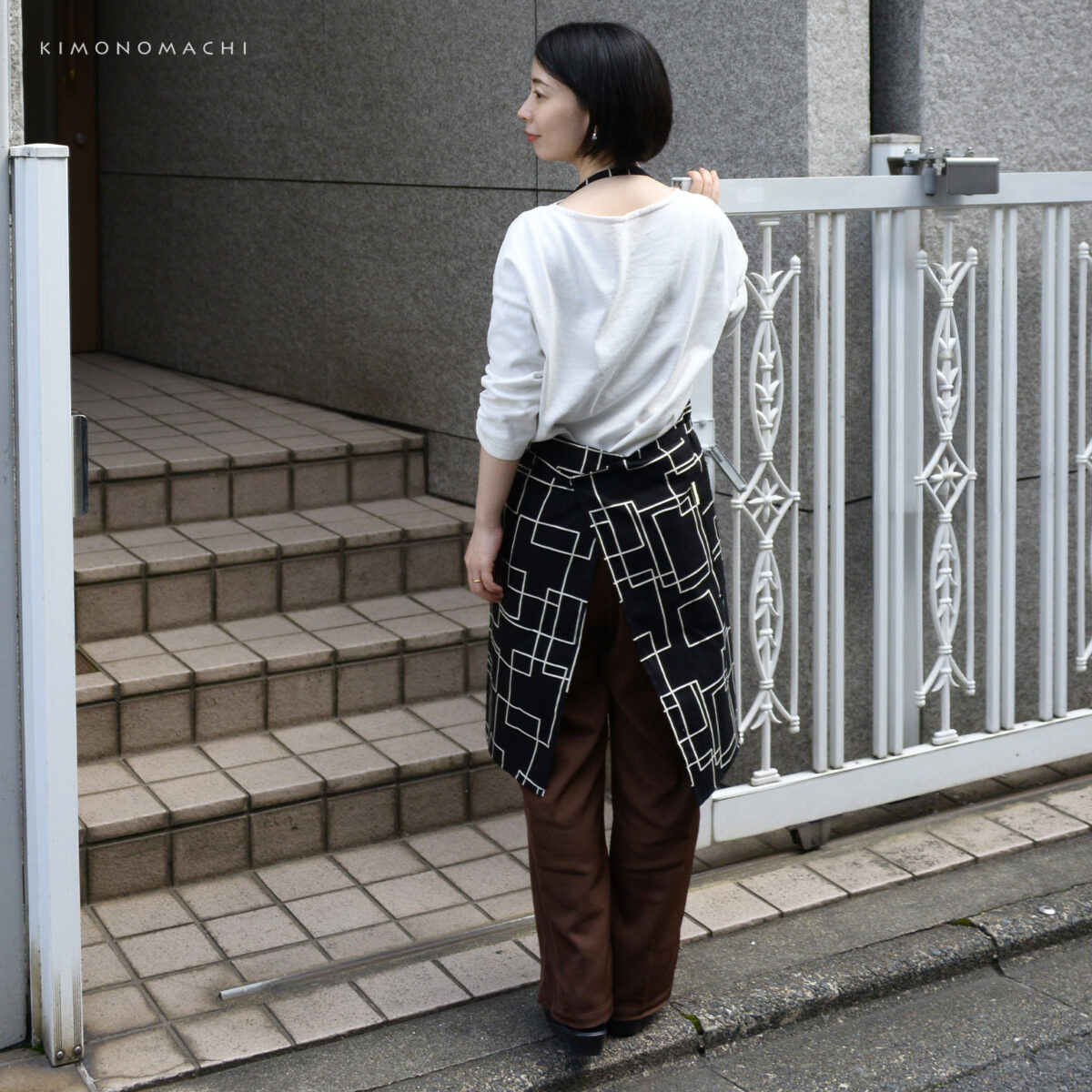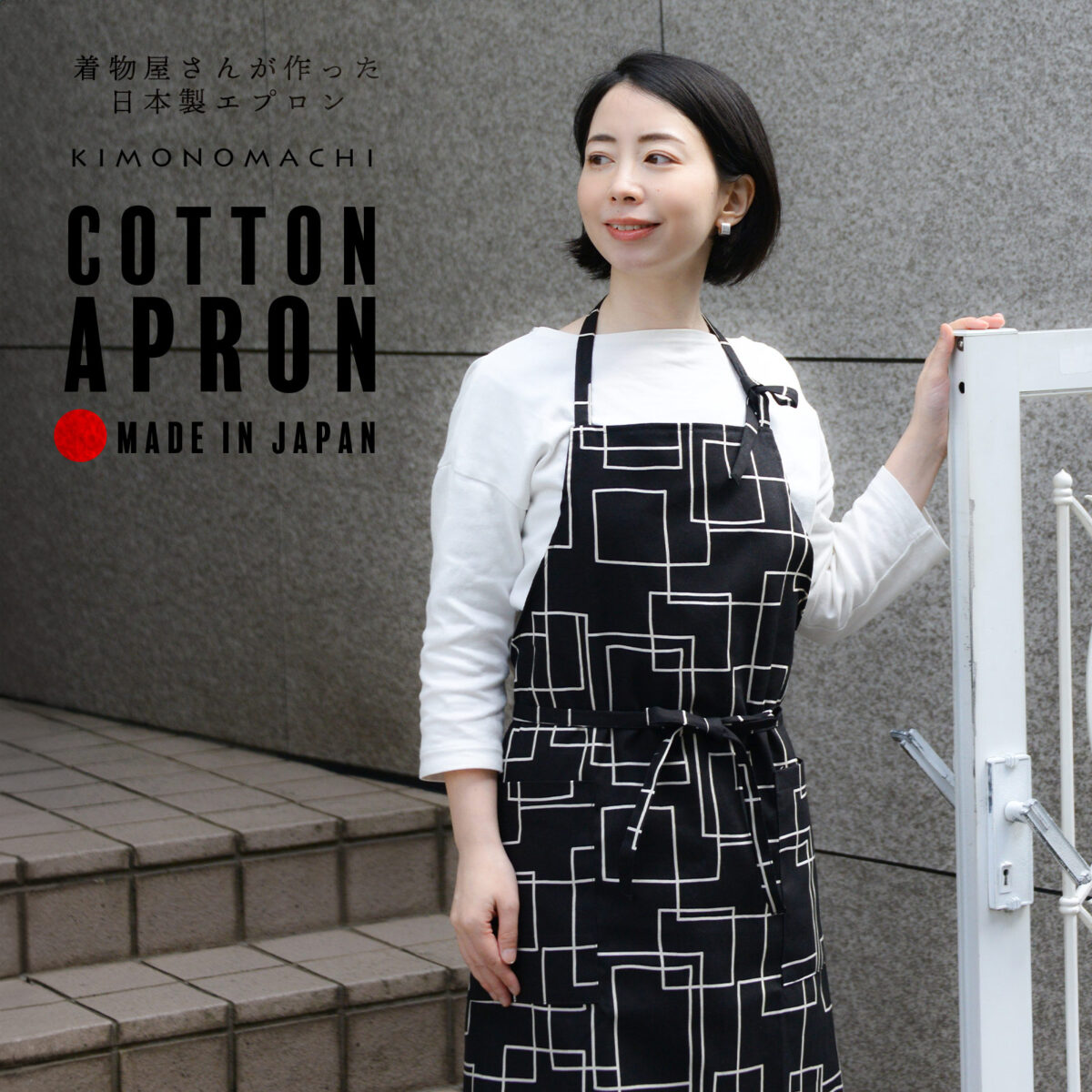 割烹着と同様に、国内で丁寧に縫製された着物屋さんオリジナルのエプロンです。