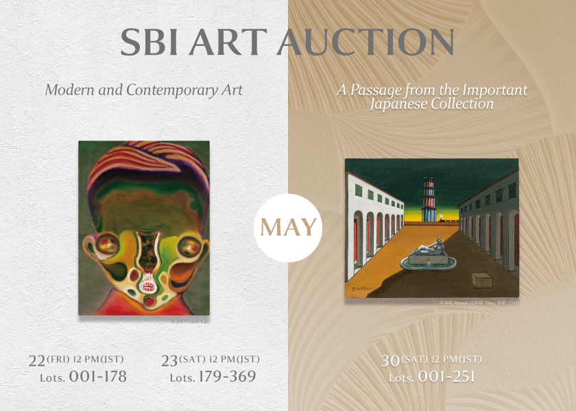 SBIアートオークション株式会社(本社:東京都江東区、代表取締役:藤山友宏)は、2026年5月22日(金)および23日(土)に「第80回SBIアートオークション|Modern and Contemporary Art」、5月30日(土)に「第81回SBIアートオークション|A Passage from the Important Japanese Collection」を、ヒルサイドフォーラム(東京都渋谷区)にて開催いたします。