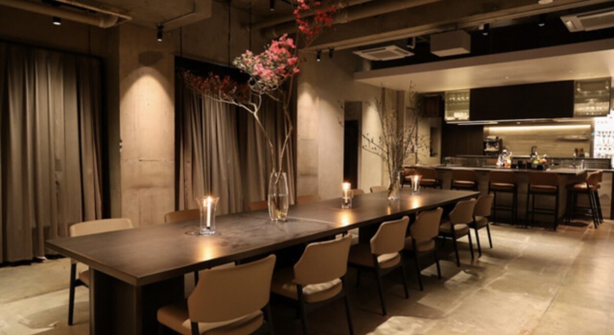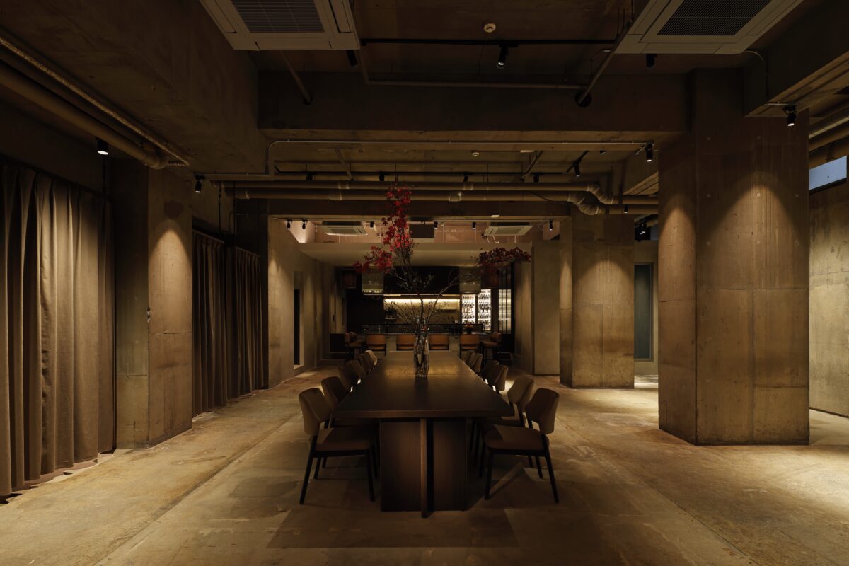 存在感のある晩餐会スタイルのロングテーブル(最大20名着席・分割可)を備え、レセプションやパーティーなど多様なシーンに対応しています。