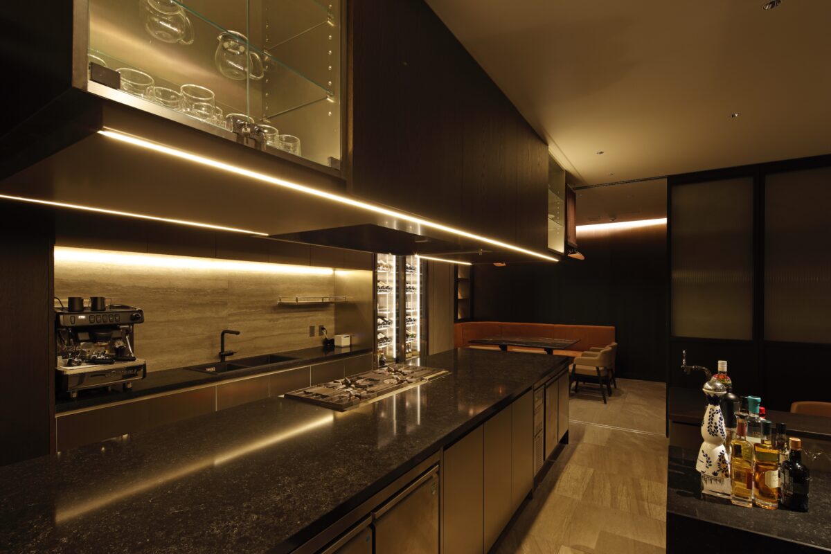 専用動線により、メインダイニングを通らずに入室できる設計となっており、パウダールーム、シャワールームを完備。接待やプライベートイベント、ファッションショーやイベント時の控室としてもご利用いただけます。また、キッチンと隣接しており、フードやドリンクの提供もスムーズに行える設計となっています。