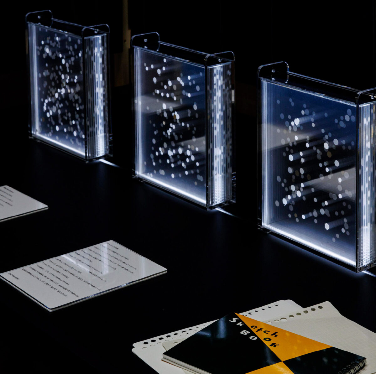 スケッチブックなど、アート活動の起点として多くの表現者に使われてきた紙素材の端材に着目。描くこと、考えること、試すことの痕跡が残るそれらを「創造の足跡」と捉え、身にまとうアートへと再構築します。