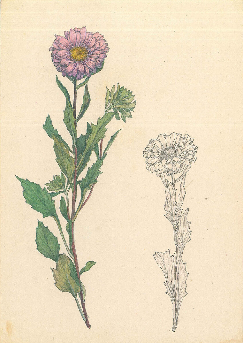 江上茂雄『私の鎮魂花譜』より 制作年不詳 鉛筆、水彩 個人蔵