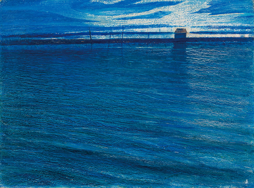 江上茂雄《海のくもり日Ⅱ》1960年頃 クレヨン 個人蔵