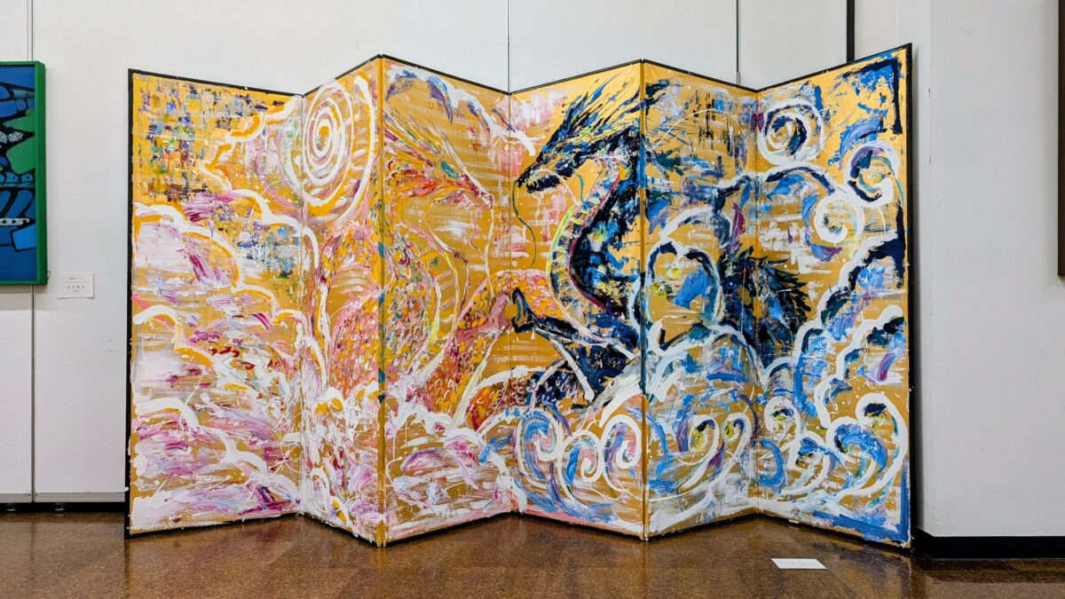 『双龍』(400 x 200 cm)金屏風、アクリル