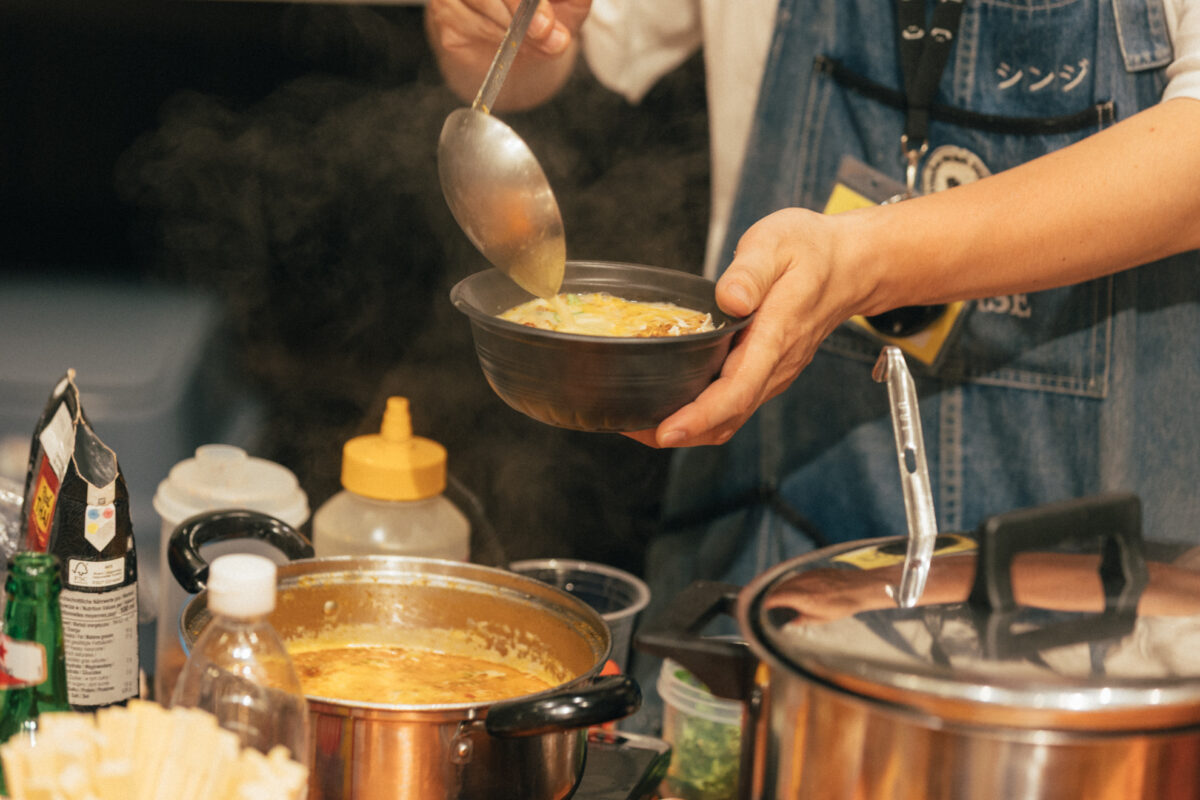 特設のラウンジエリア(2階)では、来場者、出展者がドリンクやフードを楽しむこともできます。