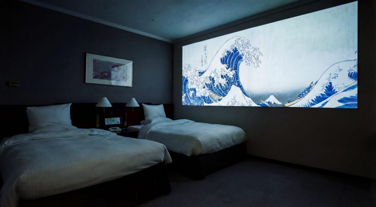 • モバイルプロジェクター「Nebulla CapsuleⅡ」の客室内設置(浮世絵のデジタルアートを鑑賞できます。)