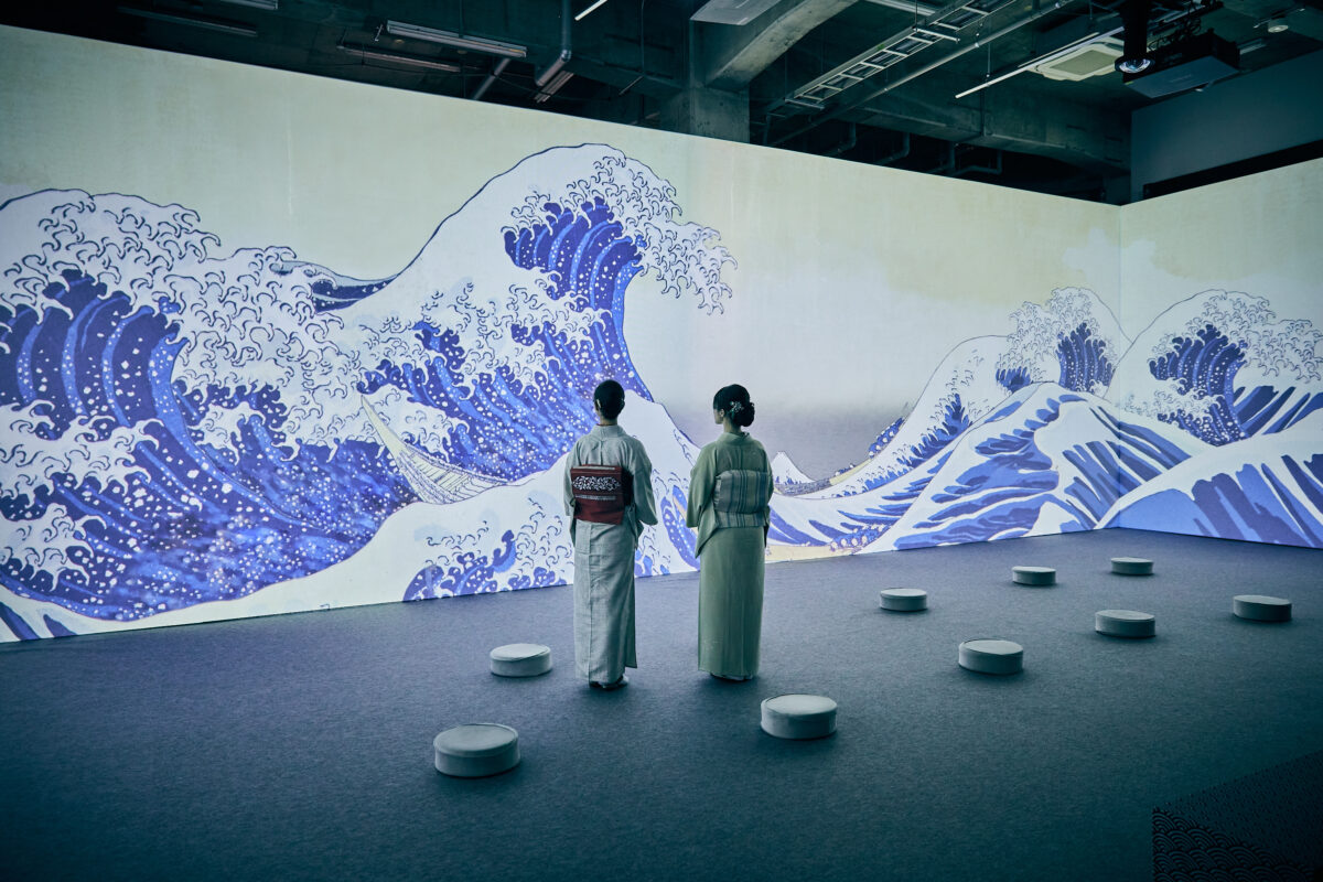 「動き出す浮世絵展」は、葛飾北斎、歌川国芳、歌川広重、喜多川歌麿、東洲斎写楽、歌川国貞など世界的な浮世絵師の作品300点以上をもとに、3DCGアニメーションやプロジェクションマッピングを駆使して大人から子どもまで楽しめるグラフィカルなデジタルアート作品として描き、立体映像空間で浮世絵の世界に没入できる体感型デジタルアートミュージアムです。デジタル展示に加え、江戸時代に刷られた著名な浮世絵や復刻版の浮世絵も展示し、浮世絵の歴史や江戸の文化、浮世絵師たちについて解説します。