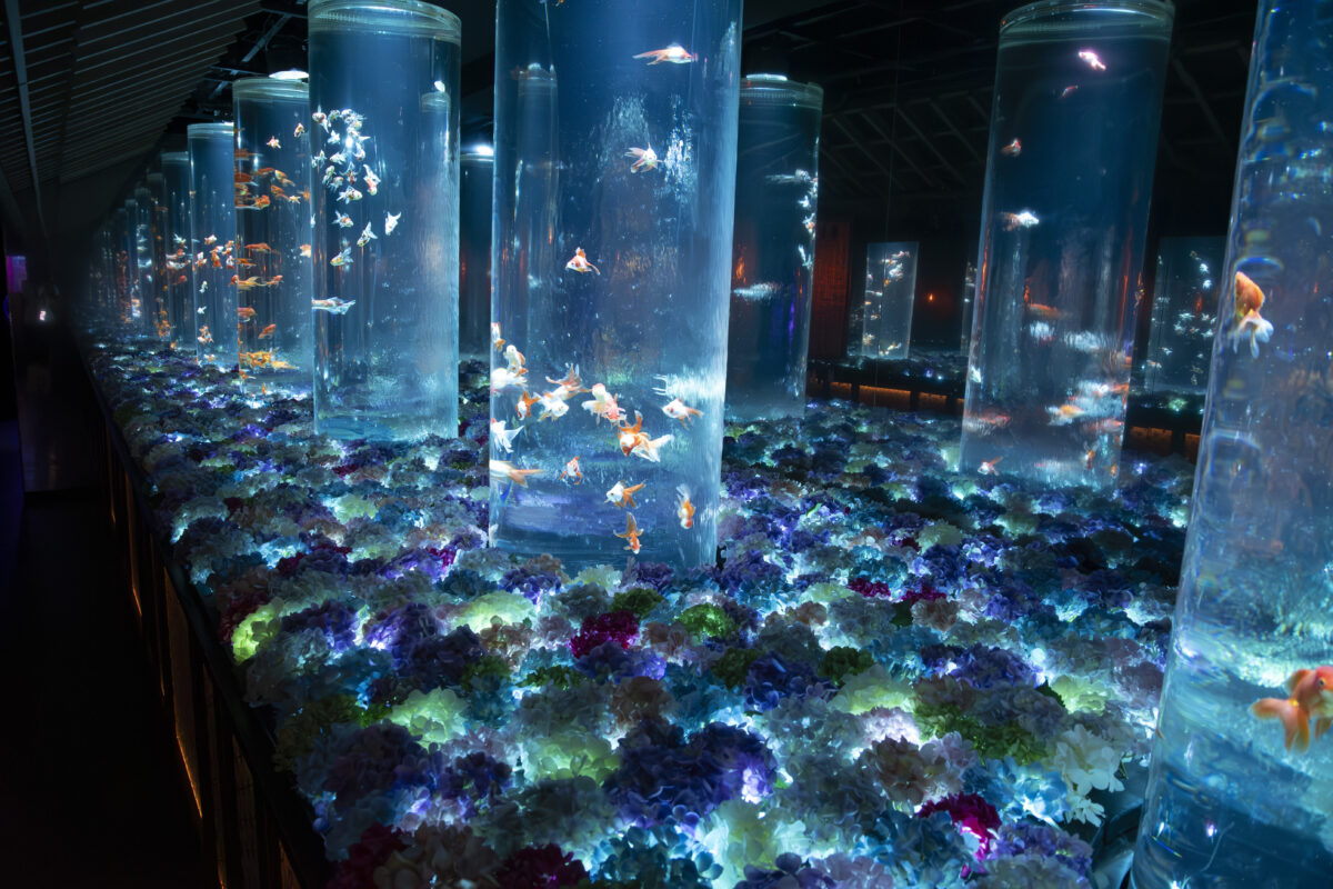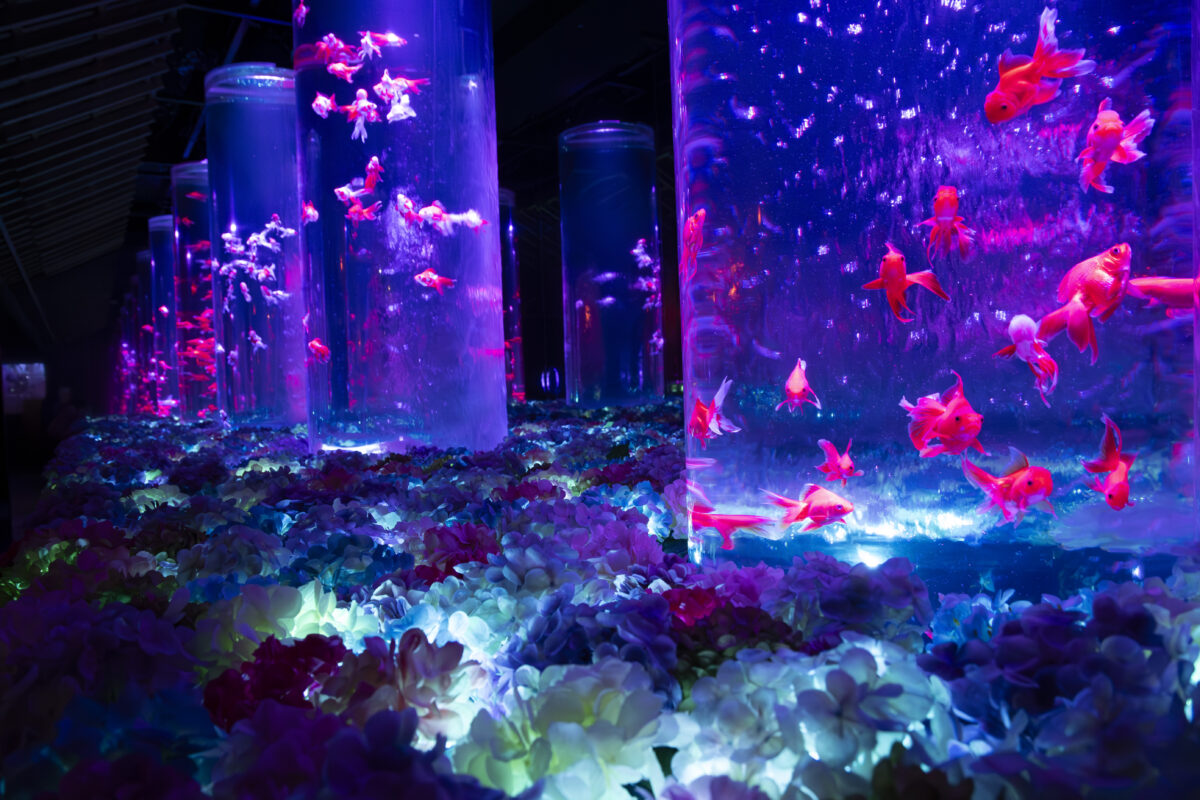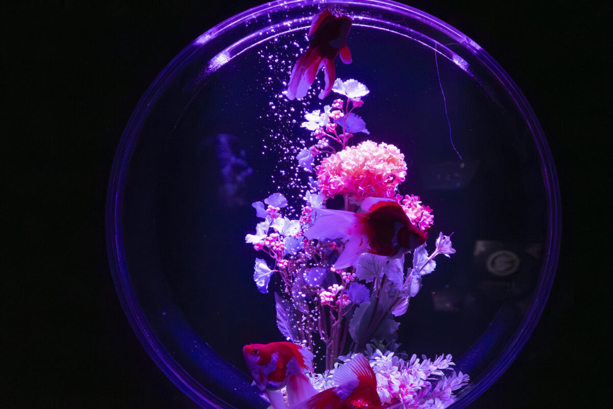 金魚泳ぐ水槽作品を光・香・音で演出する没入型エンターテインメントアート。